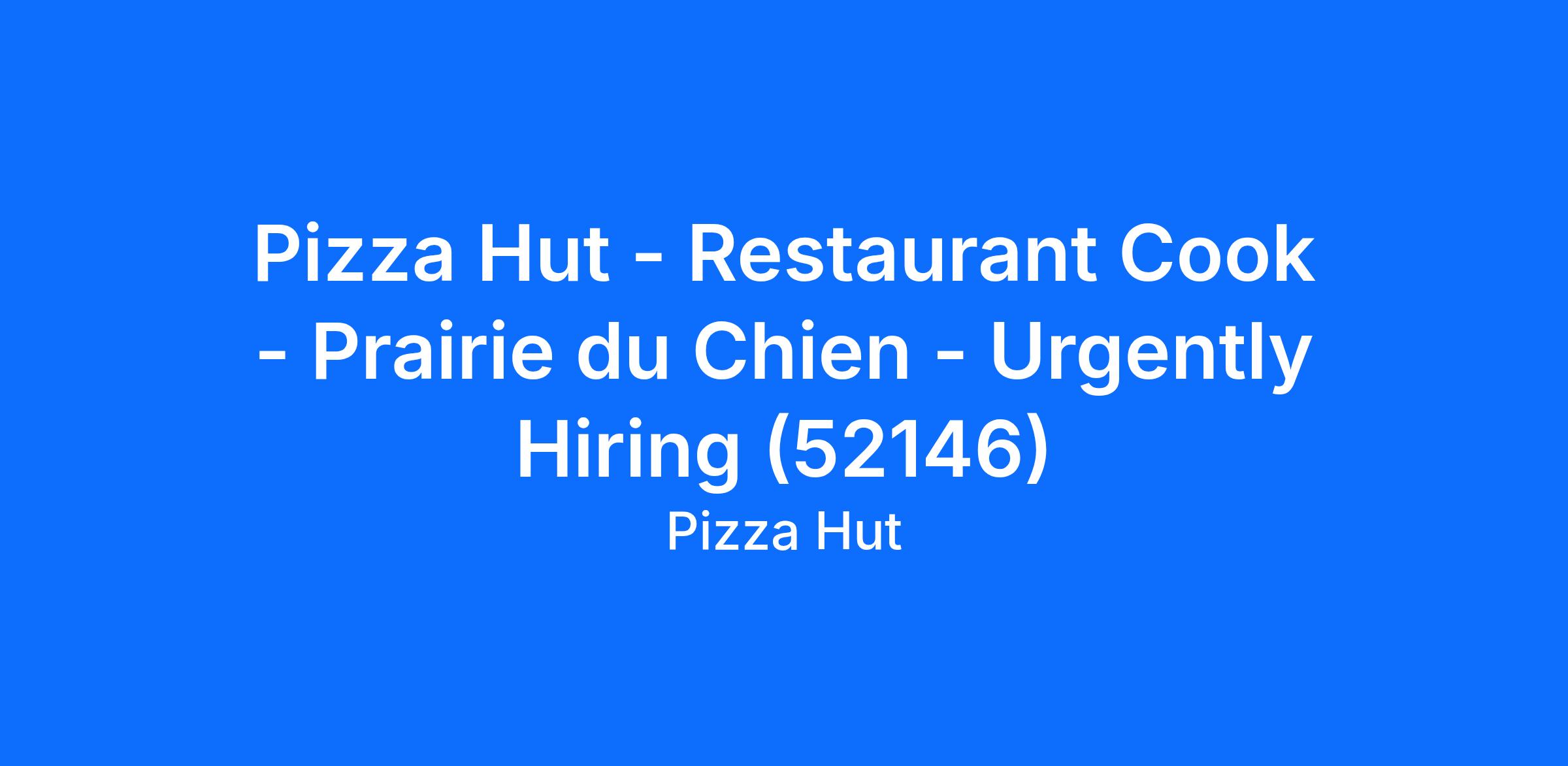 Pizza Hut - Restaurant Cook - Prairie du Chien - Urgently Hiring (52146)