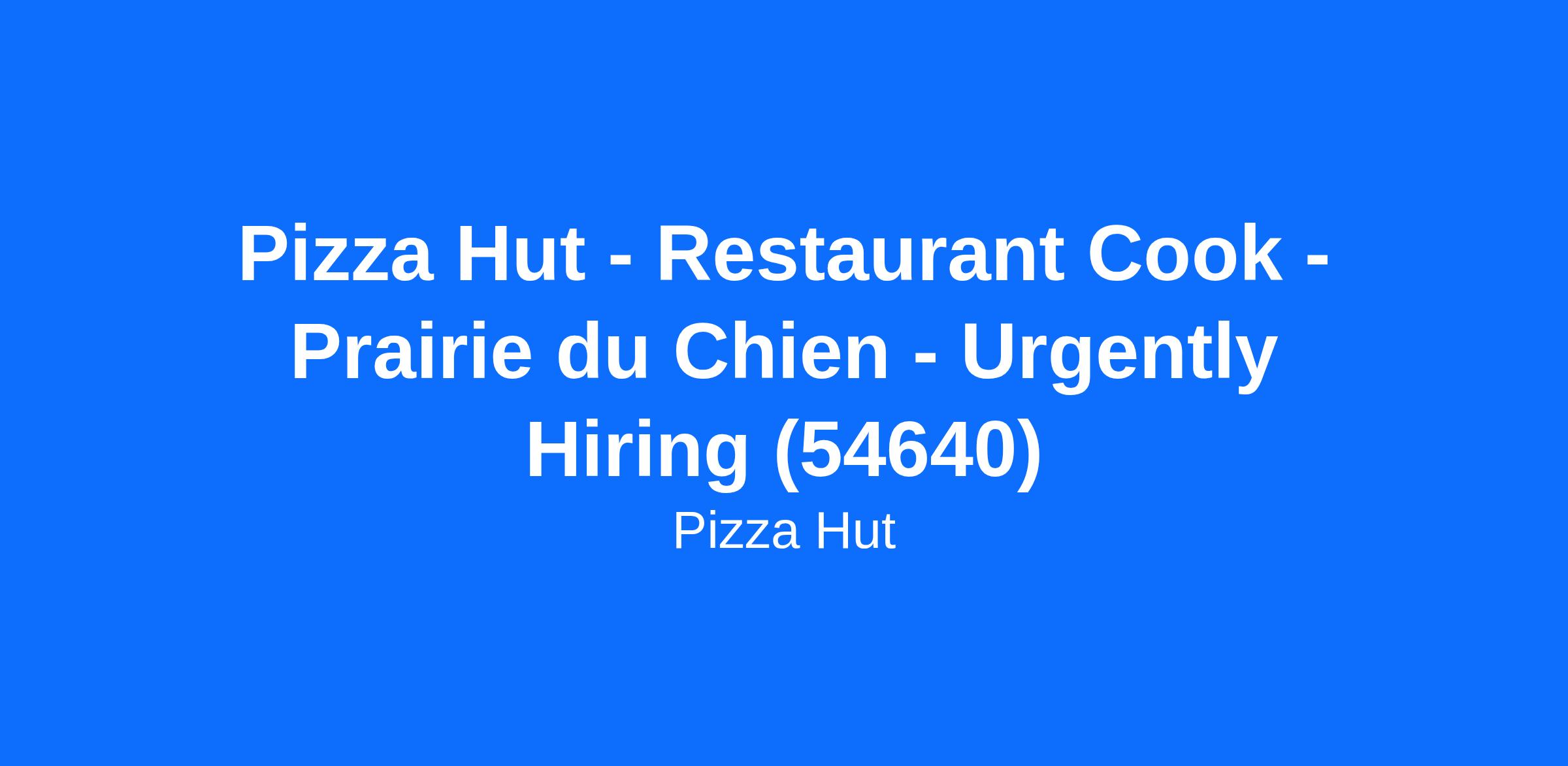 Pizza Hut - Restaurant Cook - Prairie du Chien - Urgently Hiring (54640)