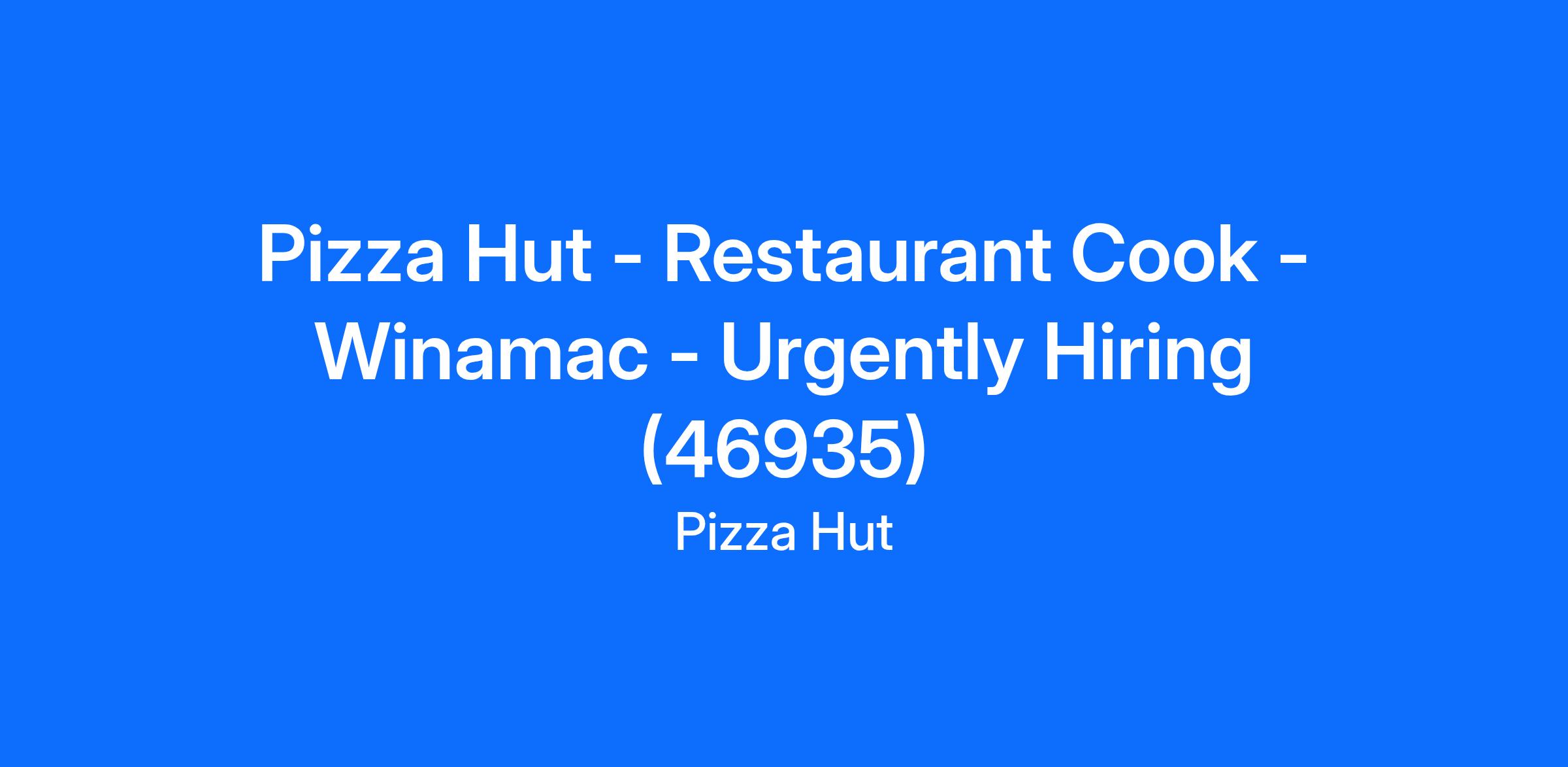 Pizza Hut - Restaurant Cook - Winamac - Urgently Hiring (46935)