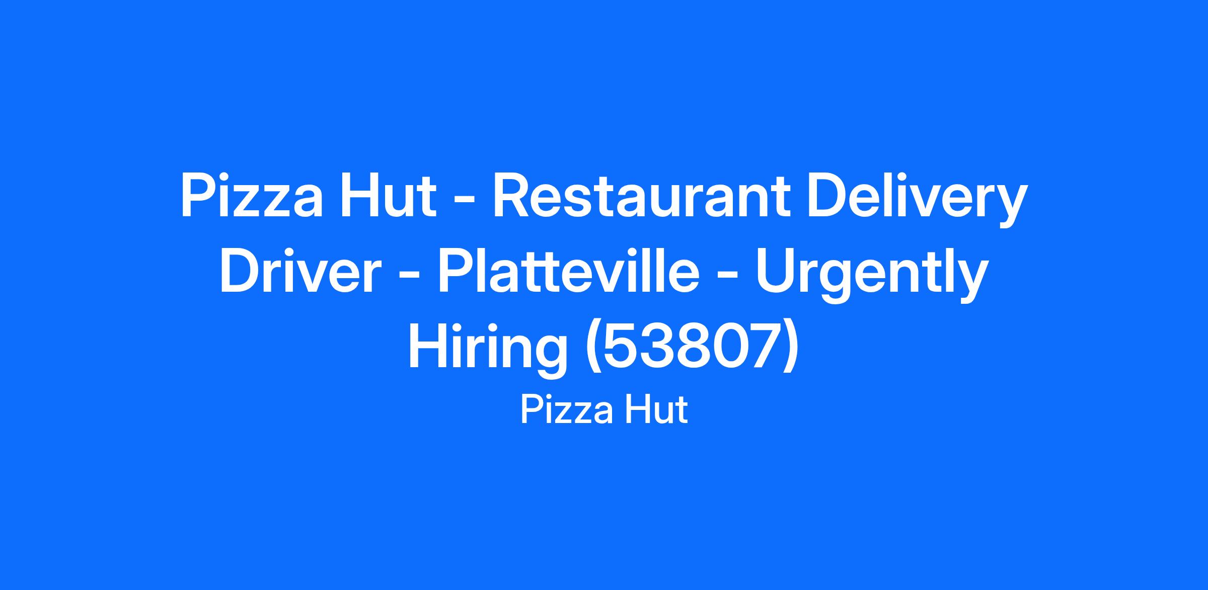Pizza Hut - Restaurant Delivery Driver - Platteville - Urgently Hiring (53807)