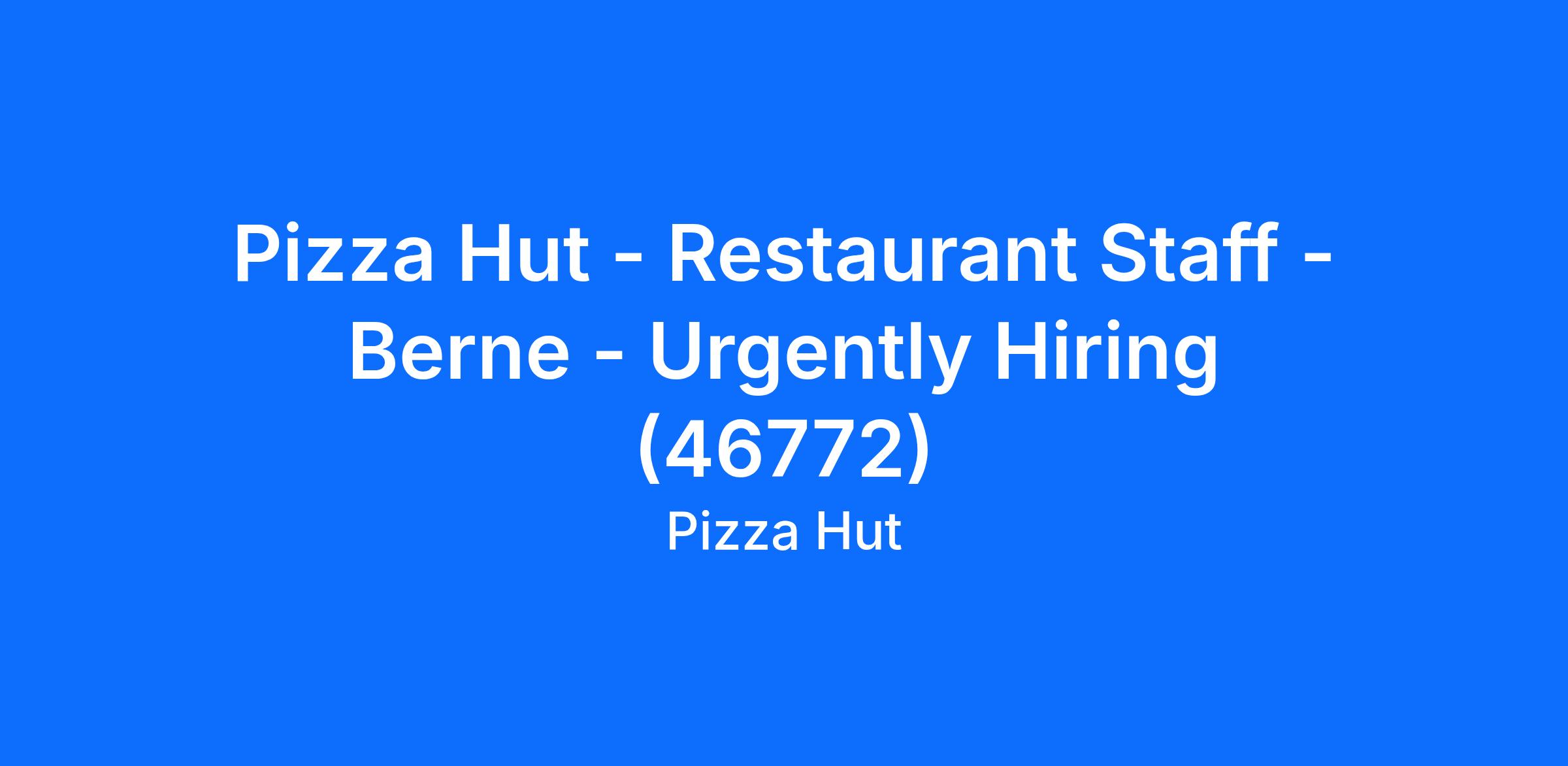 Pizza Hut - Restaurant Staff - Berne - Urgently Hiring (46772)