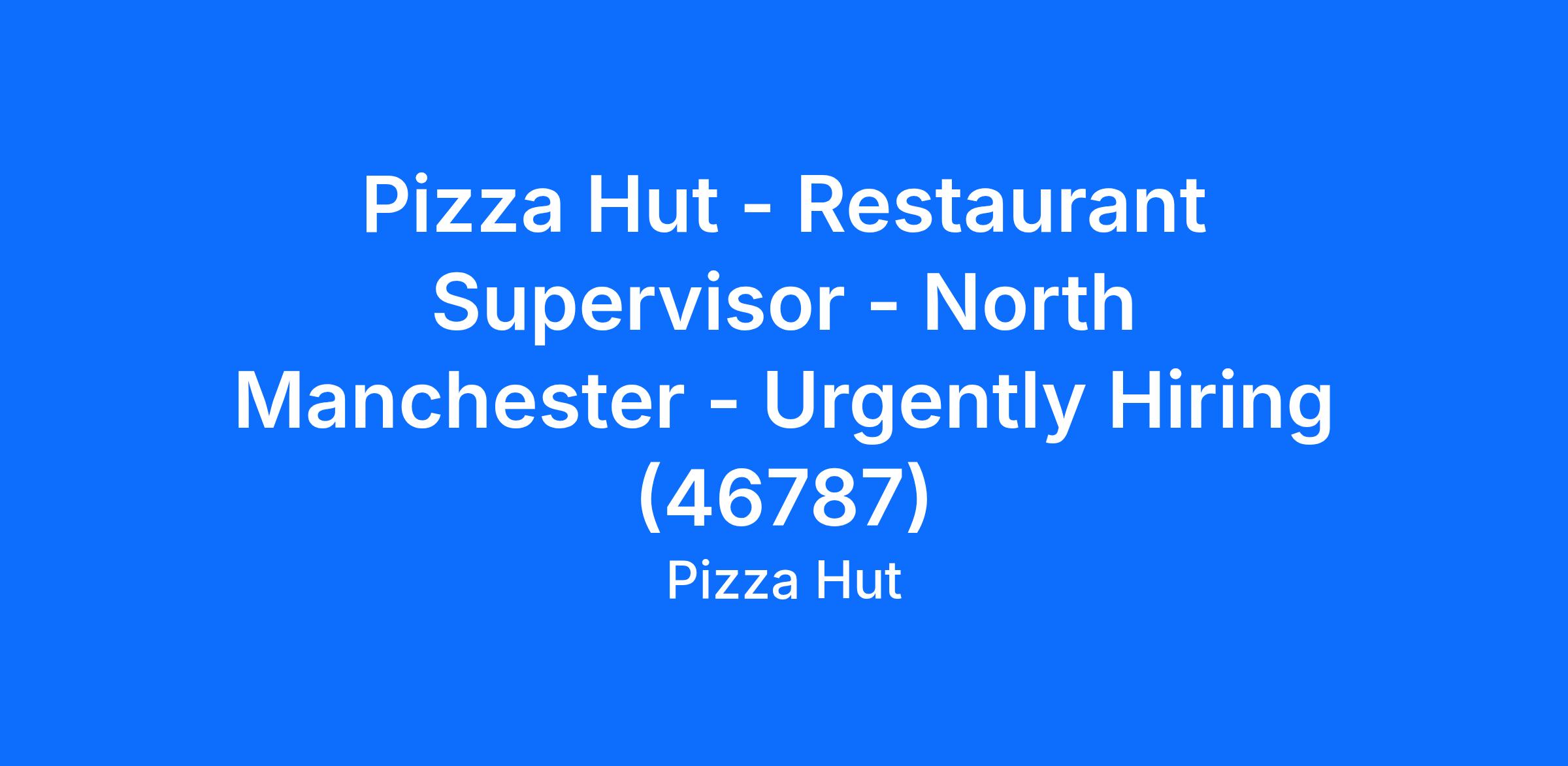 Pizza Hut - Restaurant Supervisor - North Manchester - Urgently Hiring (46787)