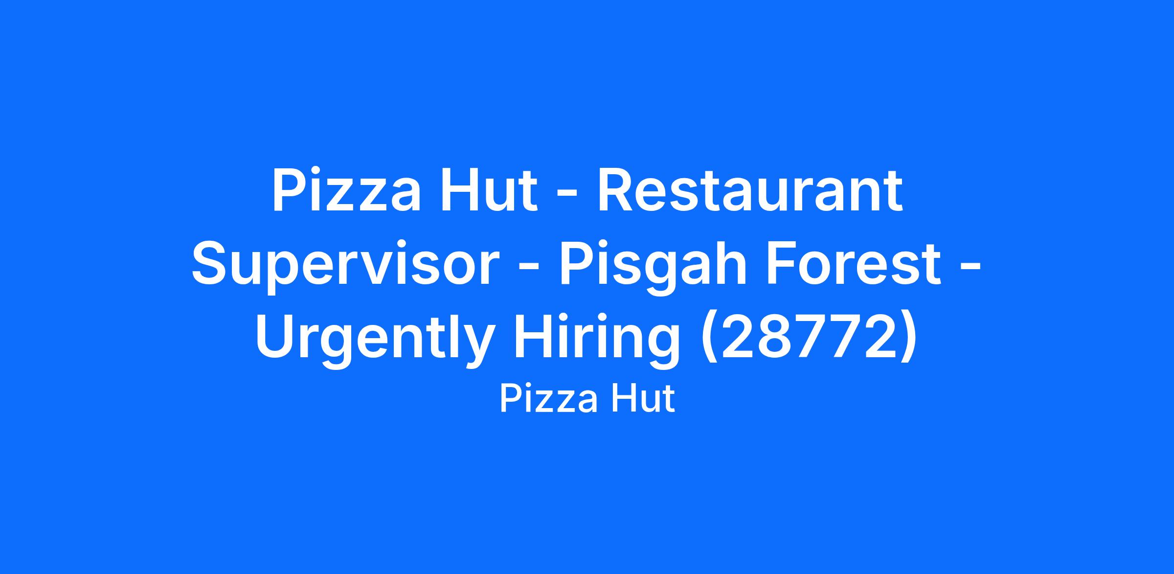 Pizza Hut - Restaurant Supervisor - Pisgah Forest - Urgently Hiring (28772)