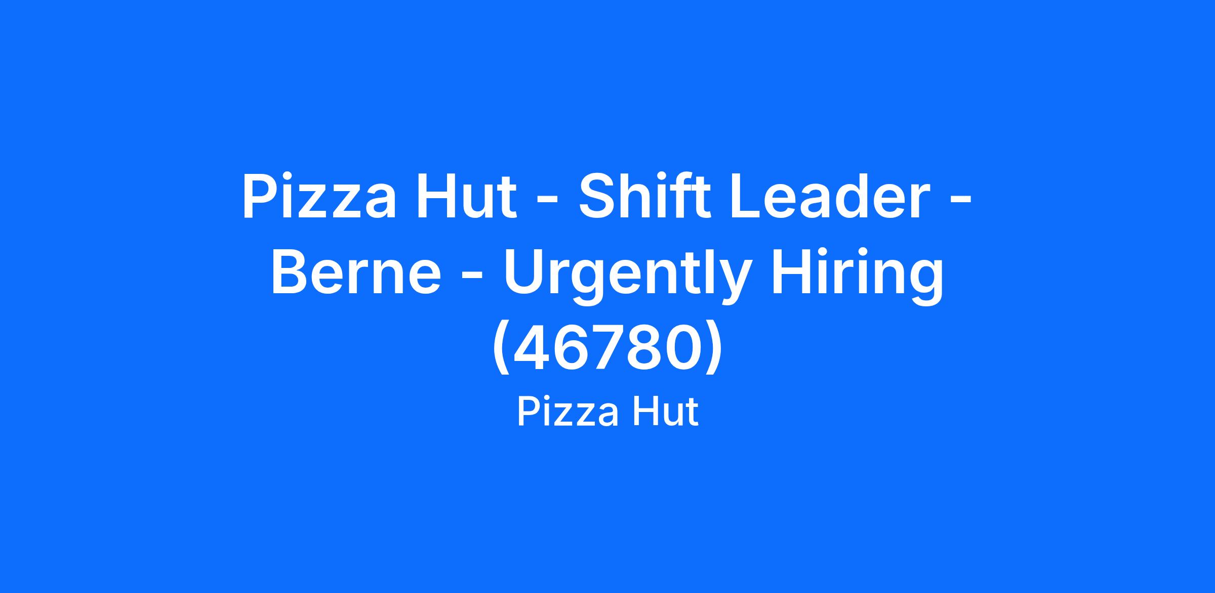 Pizza Hut - Shift Leader - Berne - Urgently Hiring (46780)