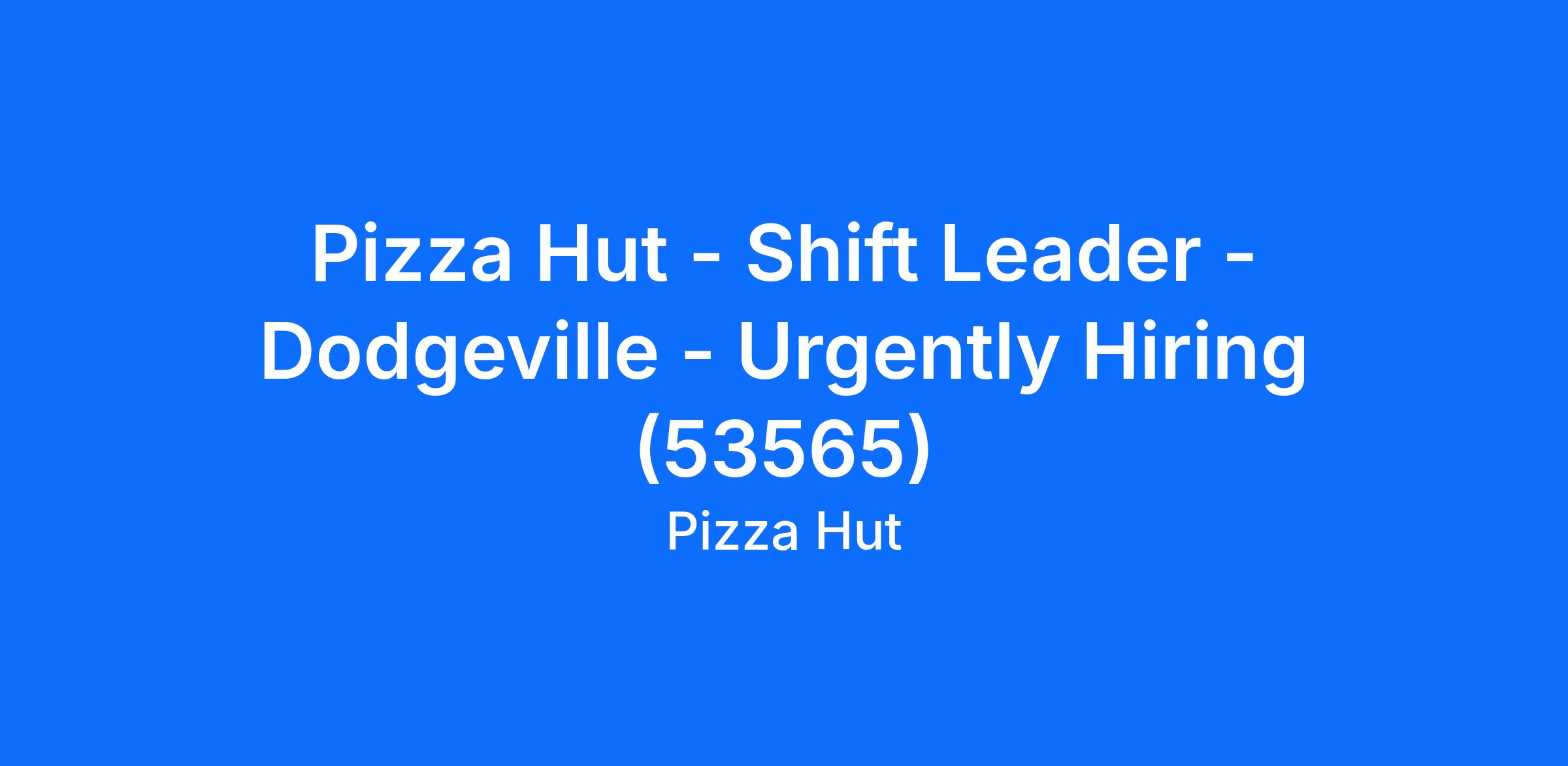 Pizza Hut - Shift Leader - Dodgeville - Urgently Hiring (53565)