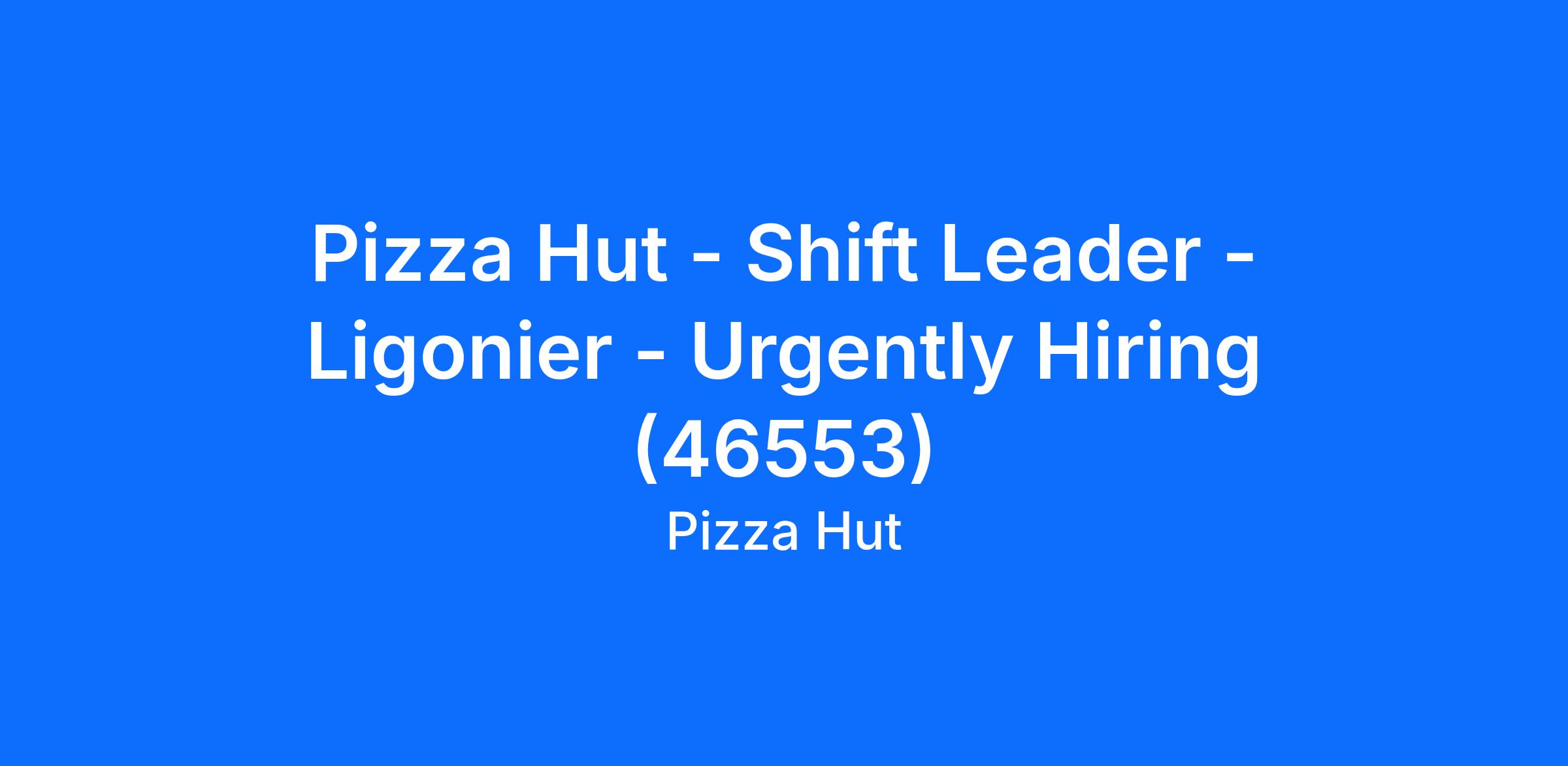 Pizza Hut - Shift Leader - Ligonier - Urgently Hiring (46553)
