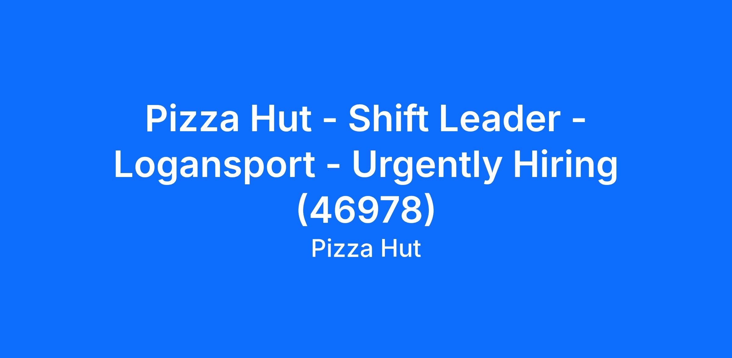 Pizza Hut - Shift Leader - Logansport - Urgently Hiring (46978)
