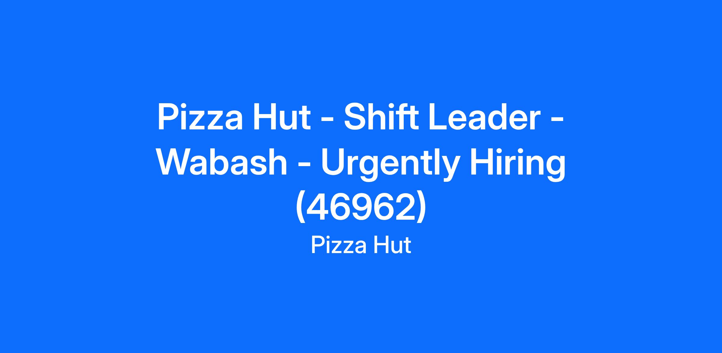 Pizza Hut - Shift Leader - Wabash - Urgently Hiring (46962)