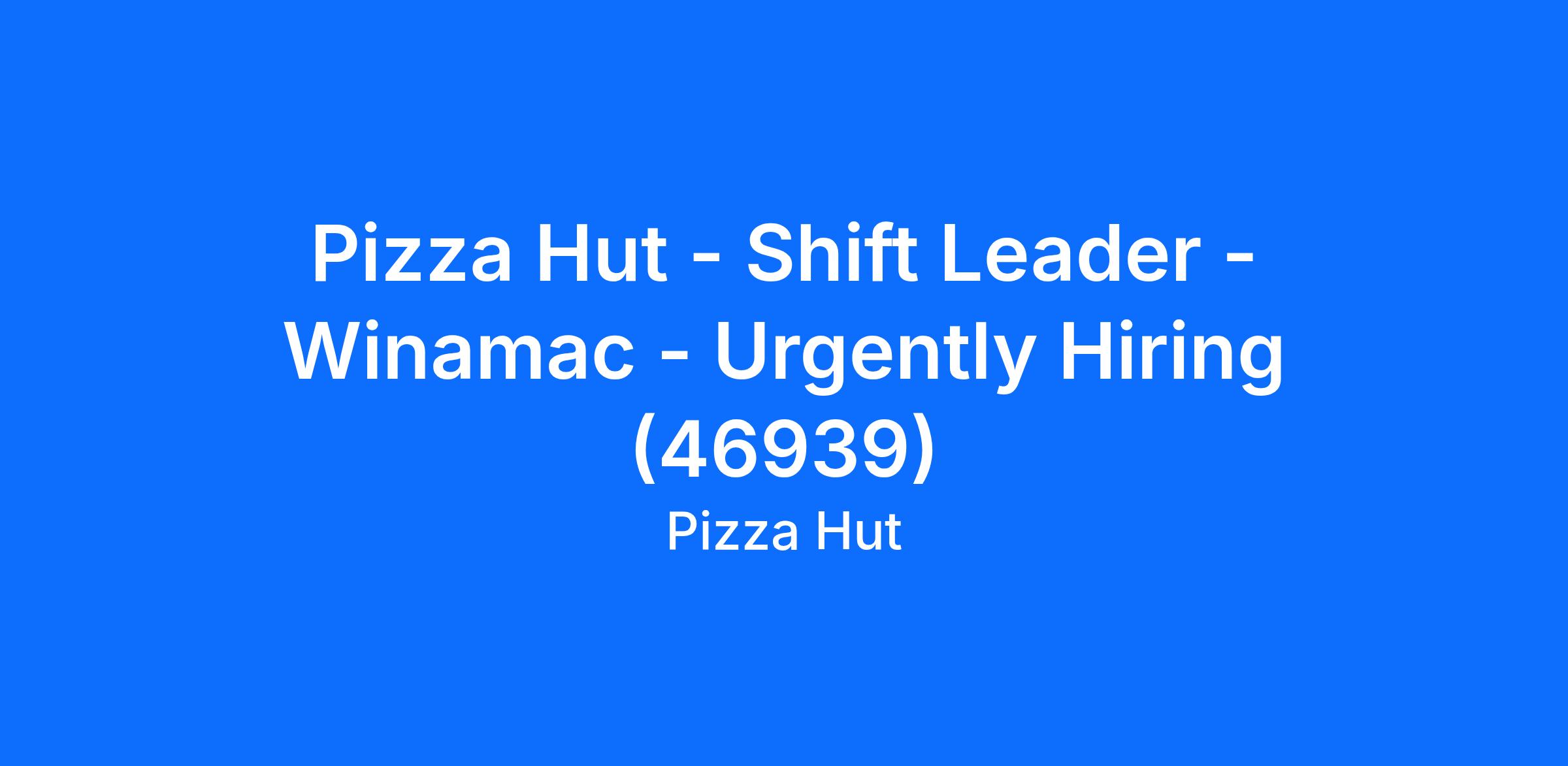 Pizza Hut - Shift Leader - Winamac - Urgently Hiring (46939)