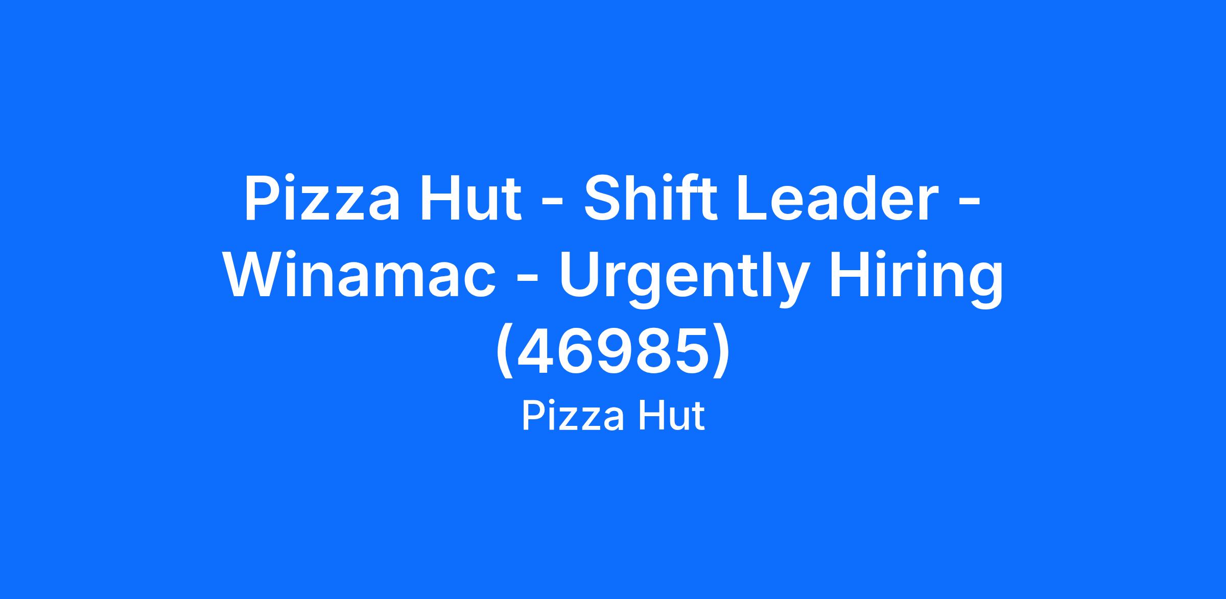 Pizza Hut - Shift Leader - Winamac - Urgently Hiring (46985)