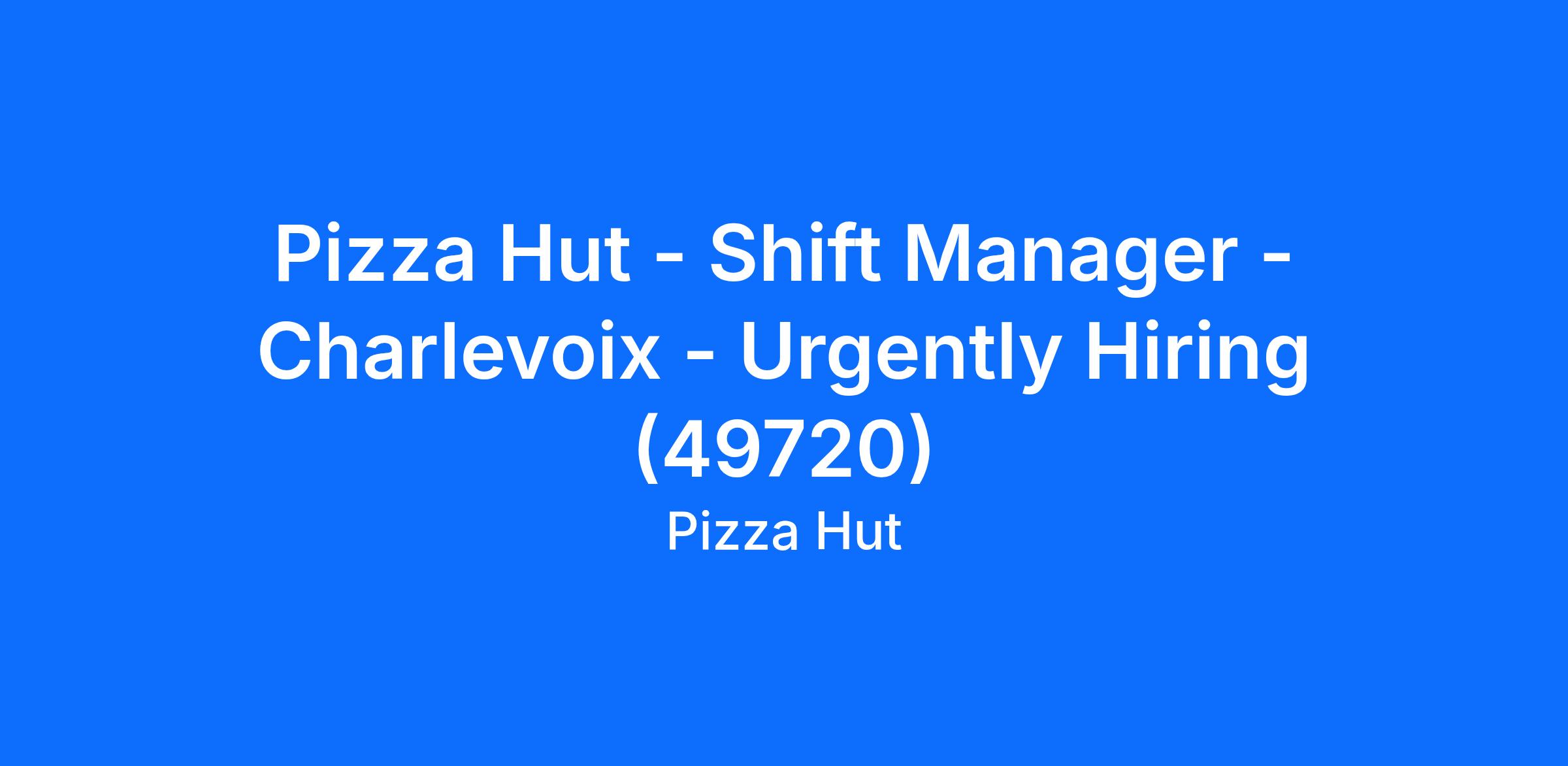 Pizza Hut - Shift Manager - Charlevoix - Urgently Hiring (49720)