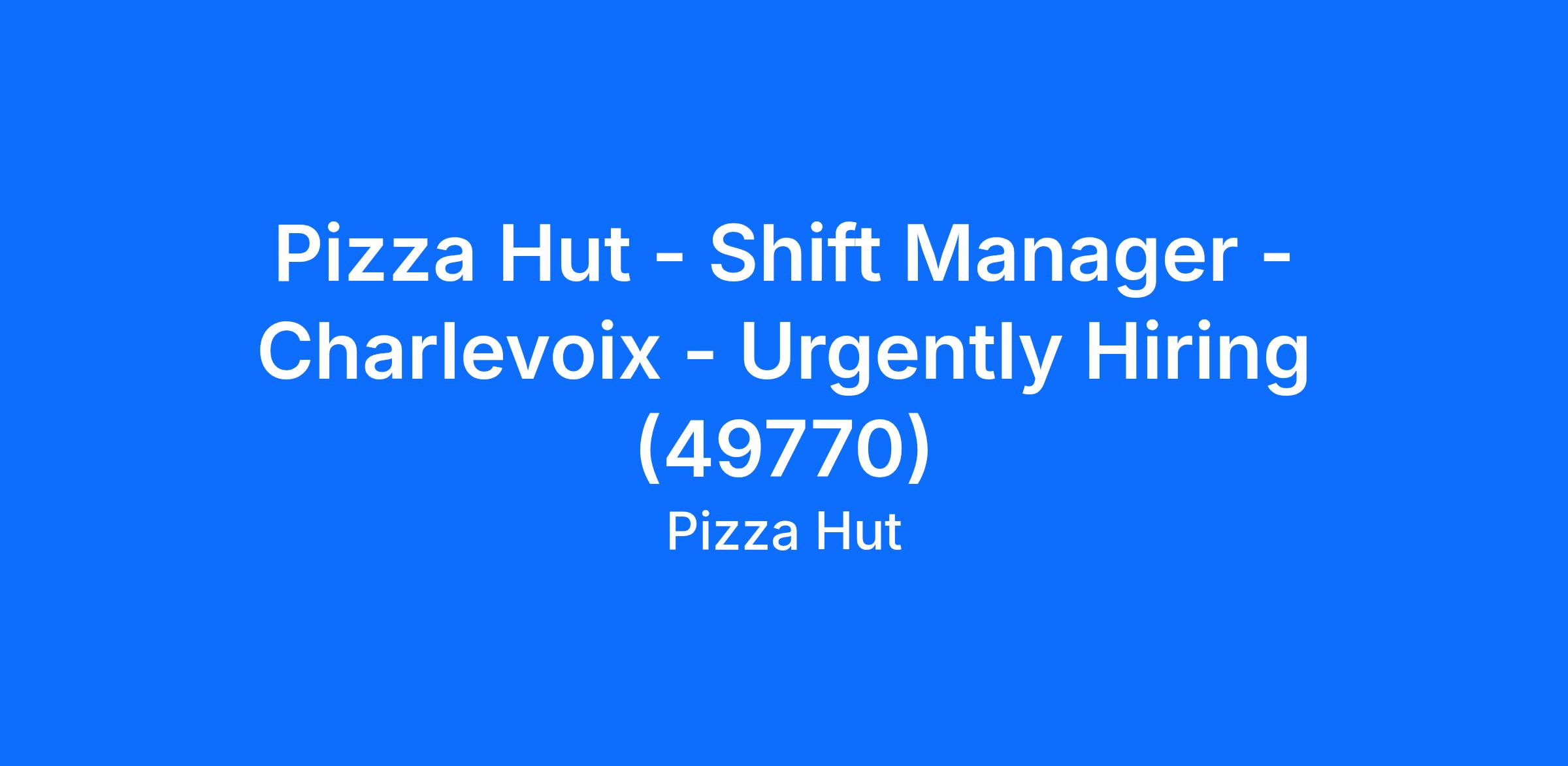 Pizza Hut - Shift Manager - Charlevoix - Urgently Hiring (49770)