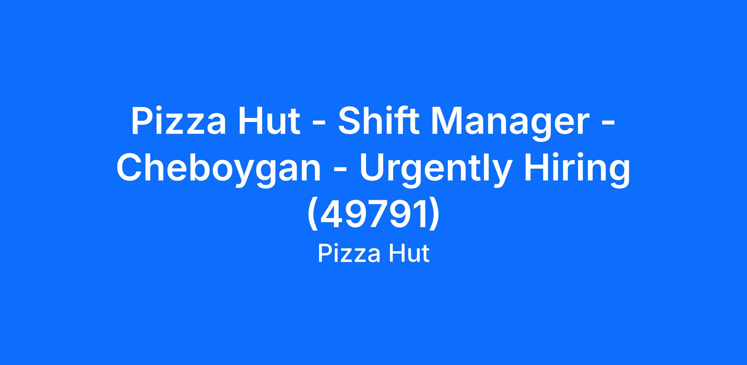 Pizza Hut - Shift Manager - Cheboygan - Urgently Hiring (49791)