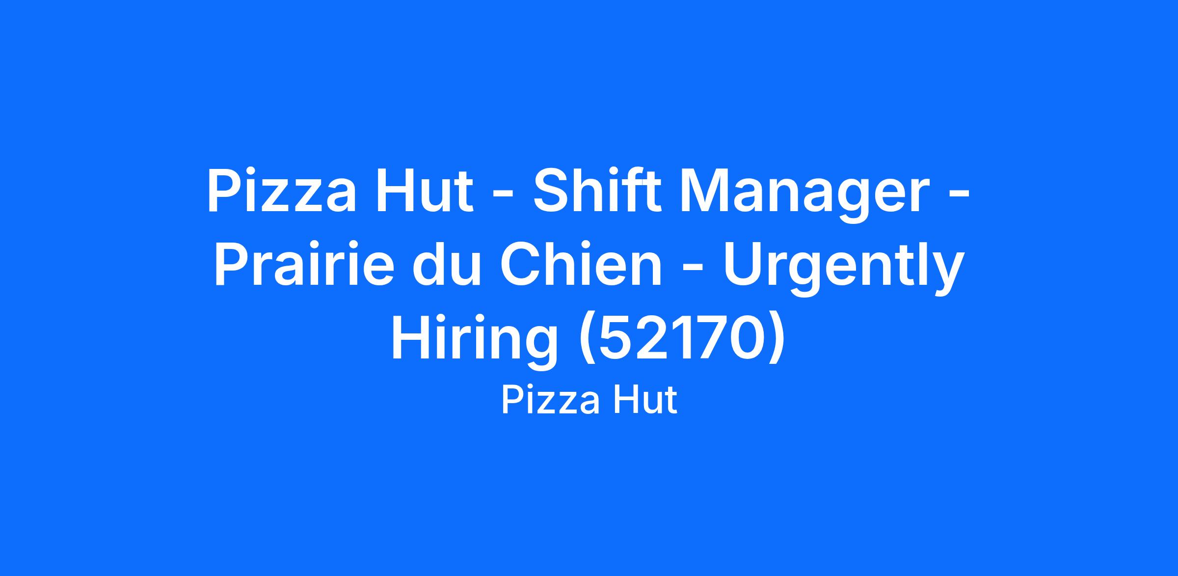 Pizza Hut - Shift Manager - Prairie du Chien - Urgently Hiring (52170)