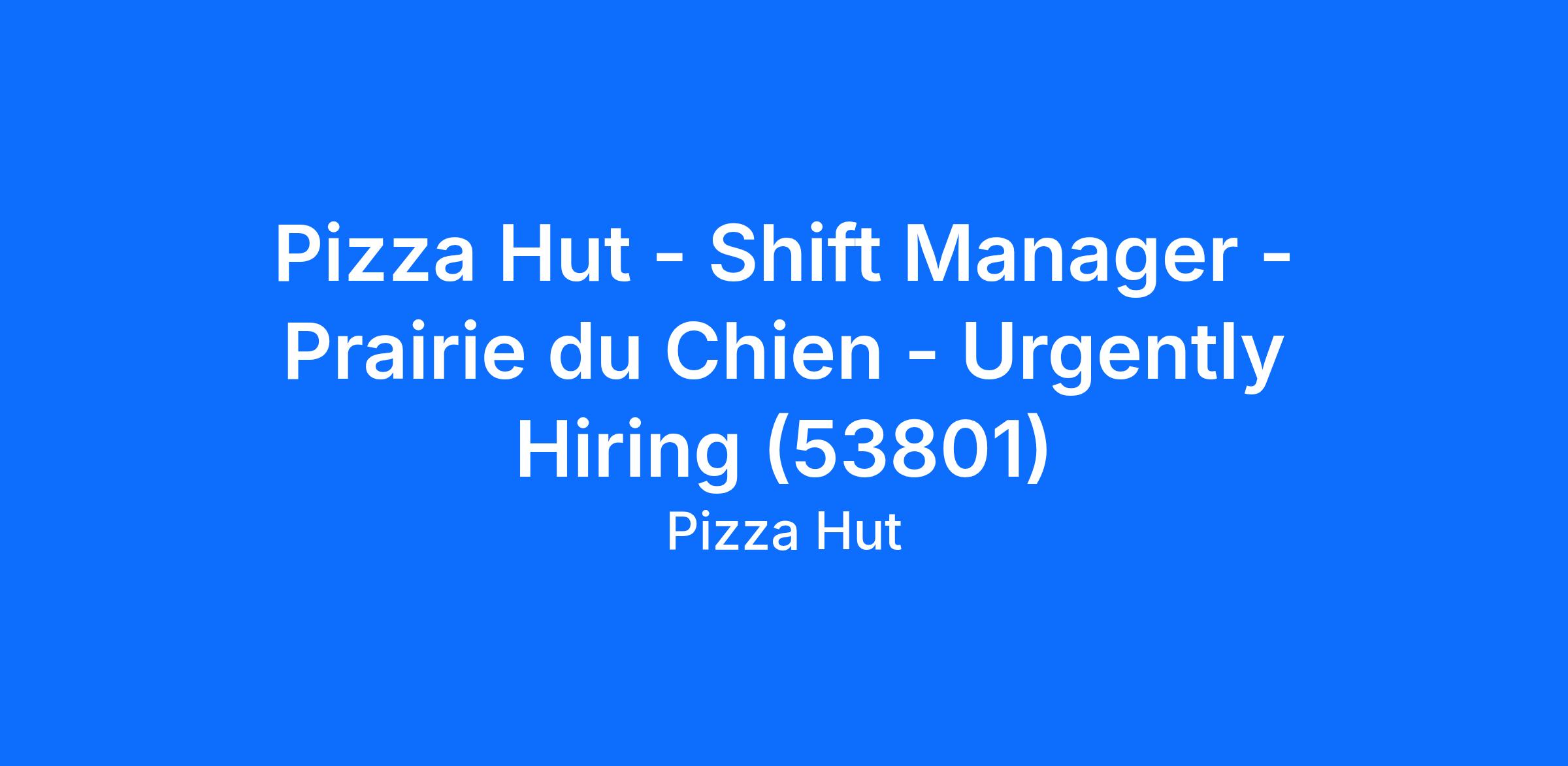 Pizza Hut - Shift Manager - Prairie du Chien - Urgently Hiring (53801)