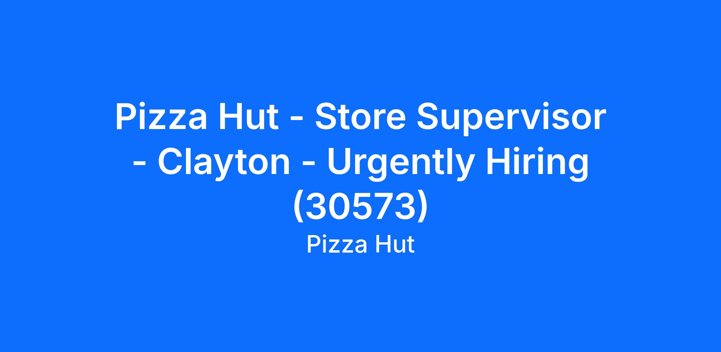 Pizza Hut - Store Supervisor - Clayton - Urgently Hiring (30573)
