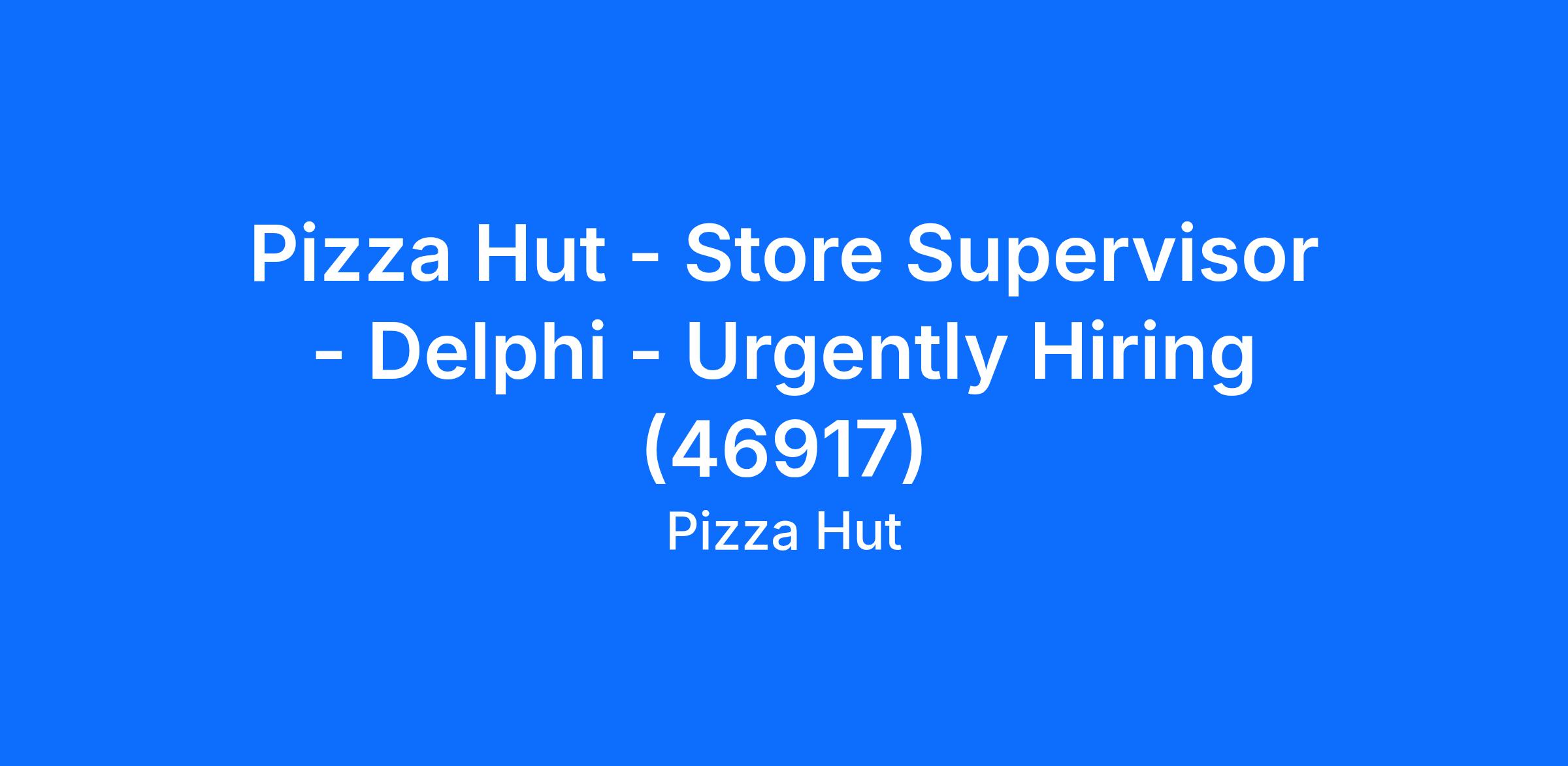 Pizza Hut - Store Supervisor - Delphi - Urgently Hiring (46917)