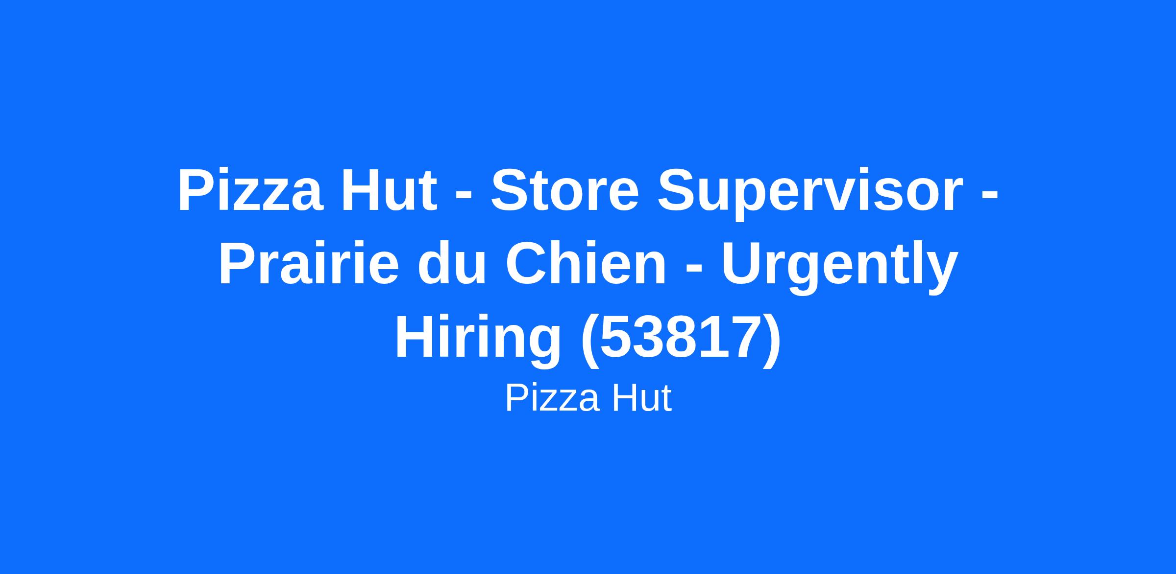 Pizza Hut - Store Supervisor - Prairie du Chien - Urgently Hiring (53817)