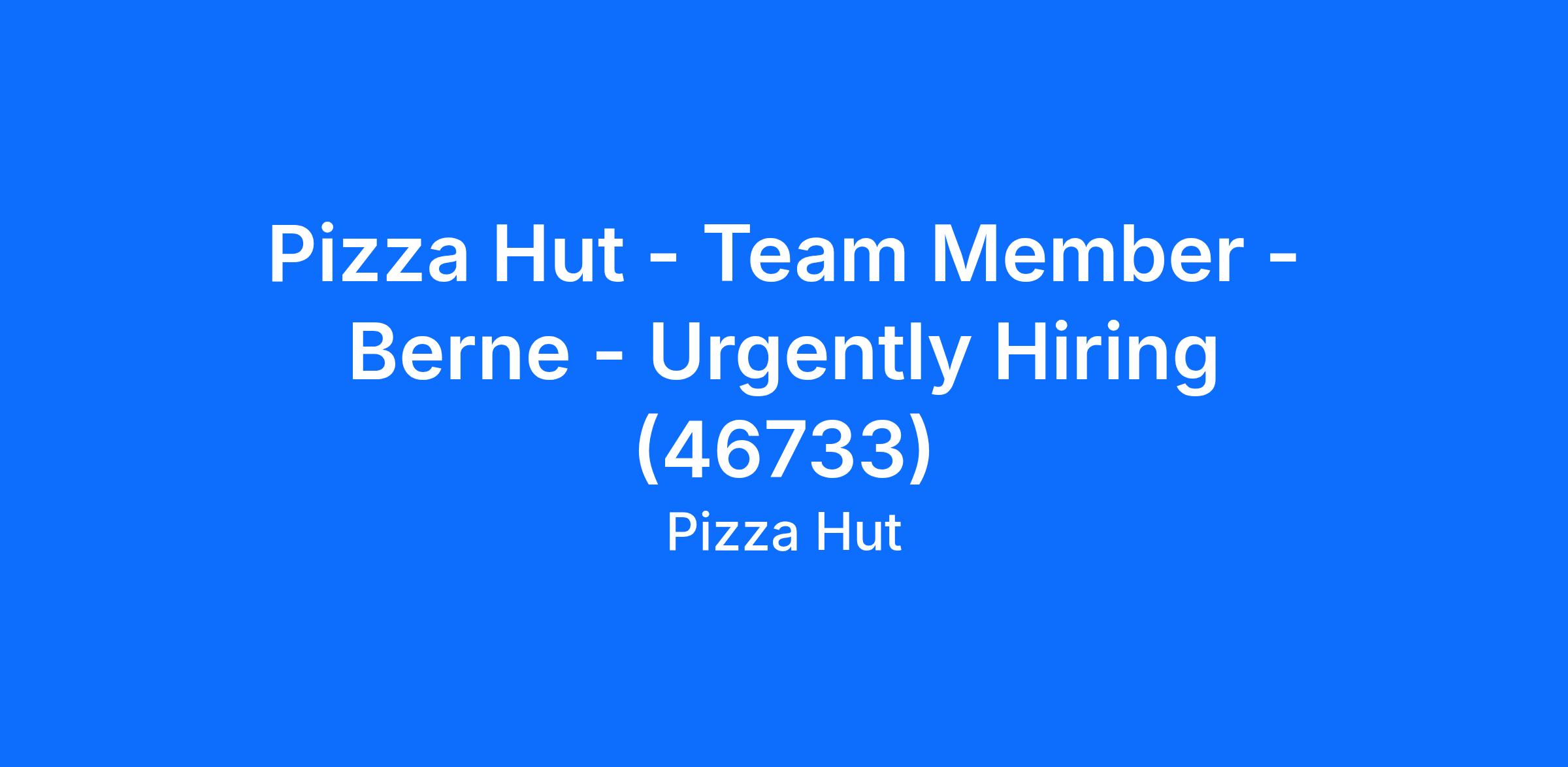 Pizza Hut - Team Member - Berne - Urgently Hiring (46733)