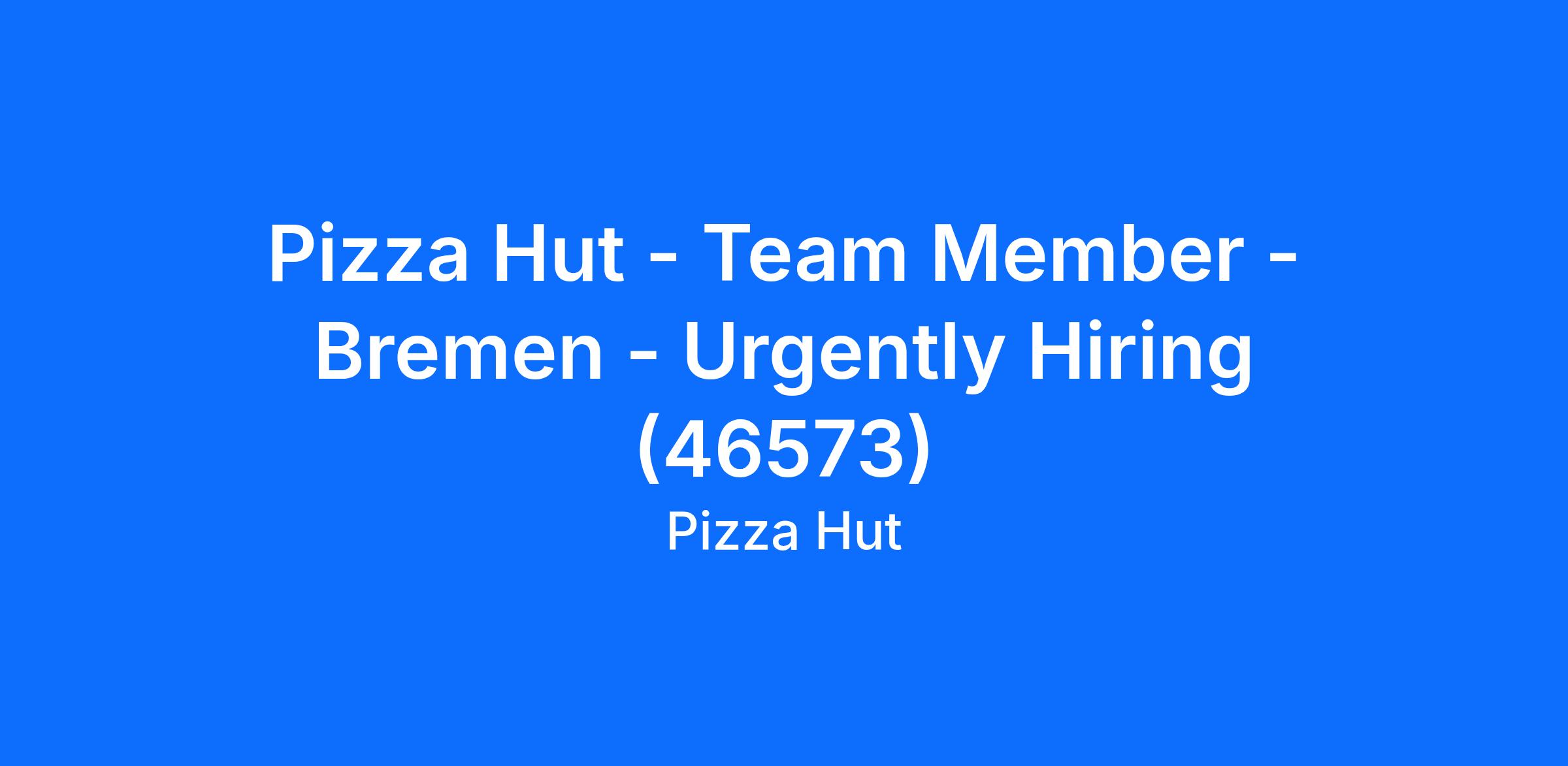 Pizza Hut - Team Member - Bremen - Urgently Hiring (46573)