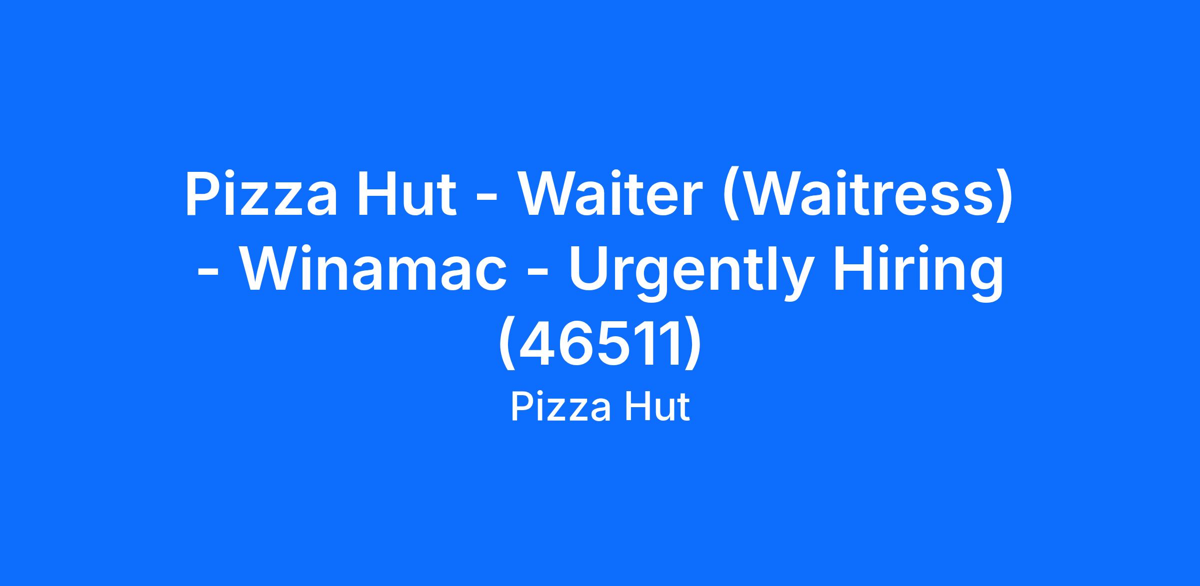 Pizza Hut - Waiter (Waitress) - Winamac - Urgently Hiring (46511)