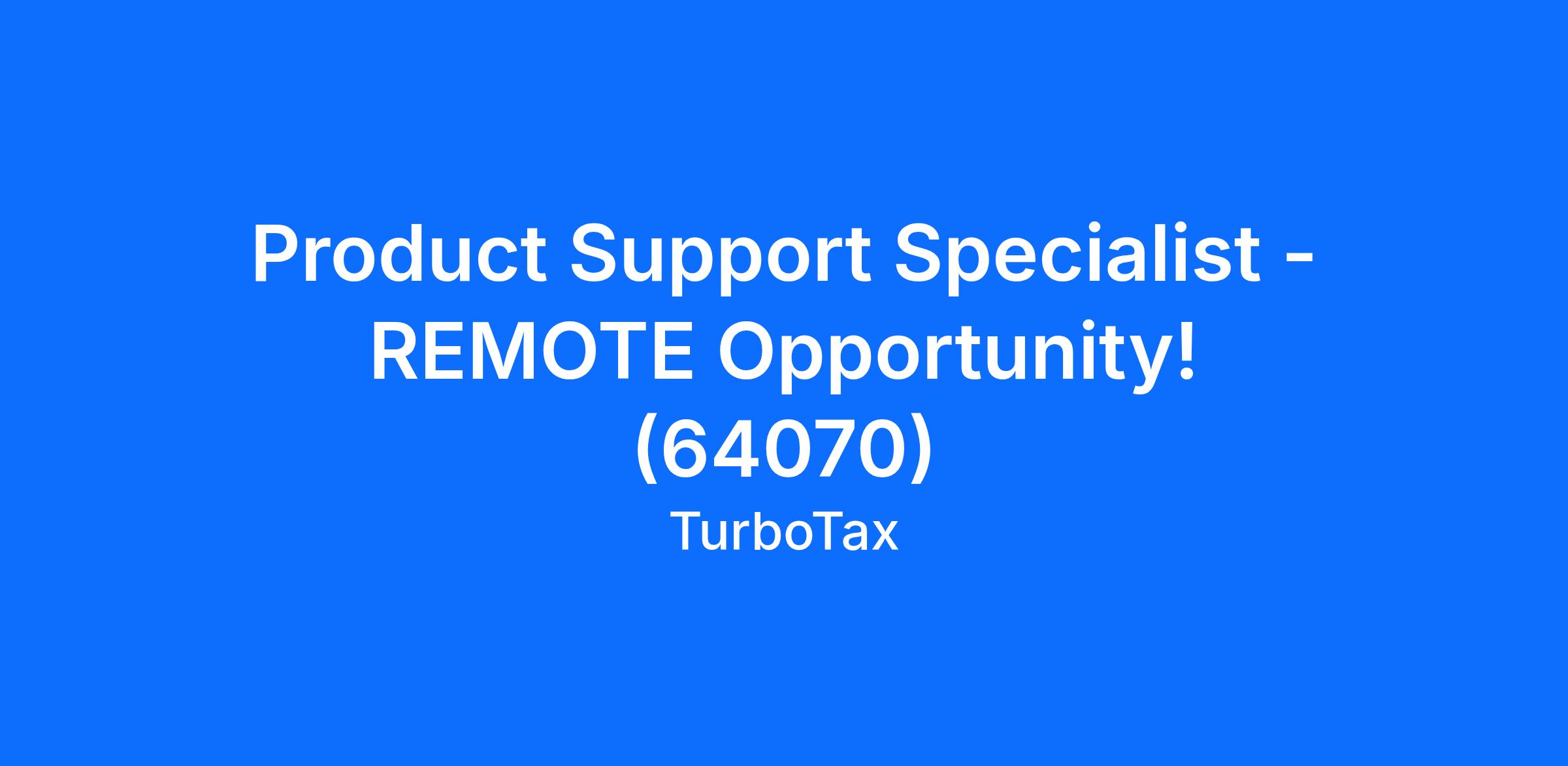 Product Support Specialist - REMOTE Opportunity! (64070)