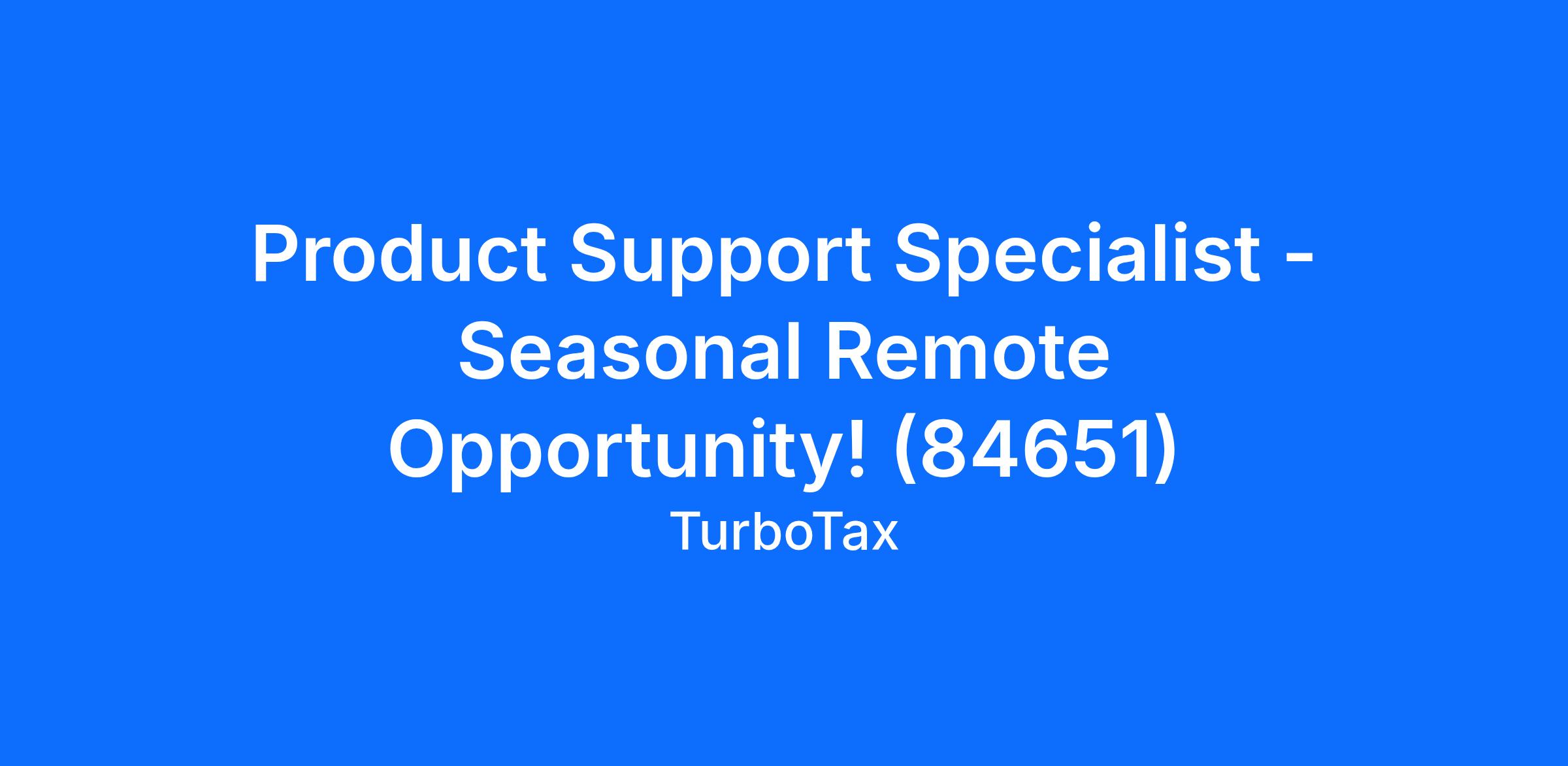 Product Support Specialist - Seasonal Remote Opportunity! (84651)