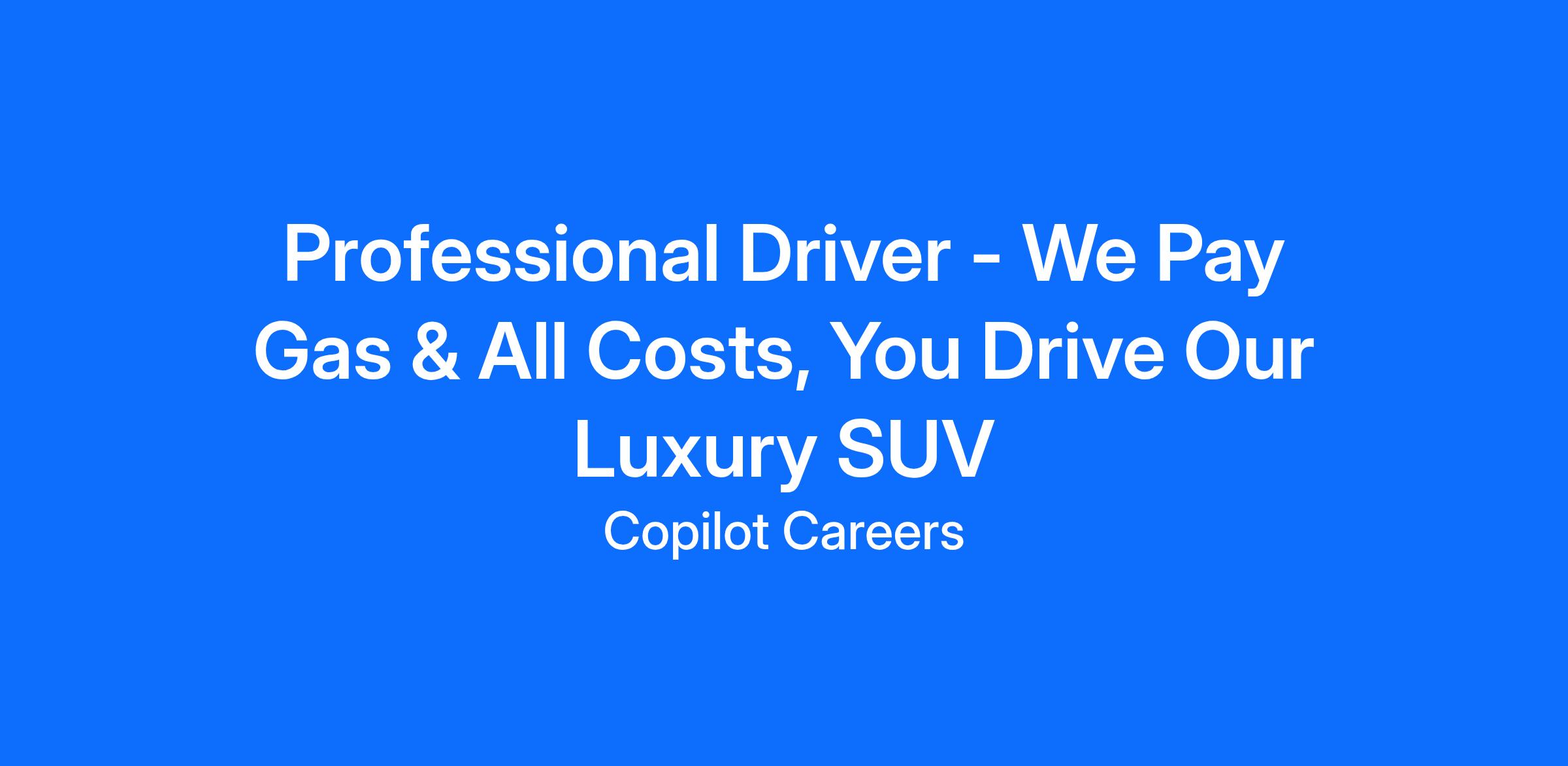 Professional Driver - We Pay Gas & All Costs, You Drive Our Luxury SUV