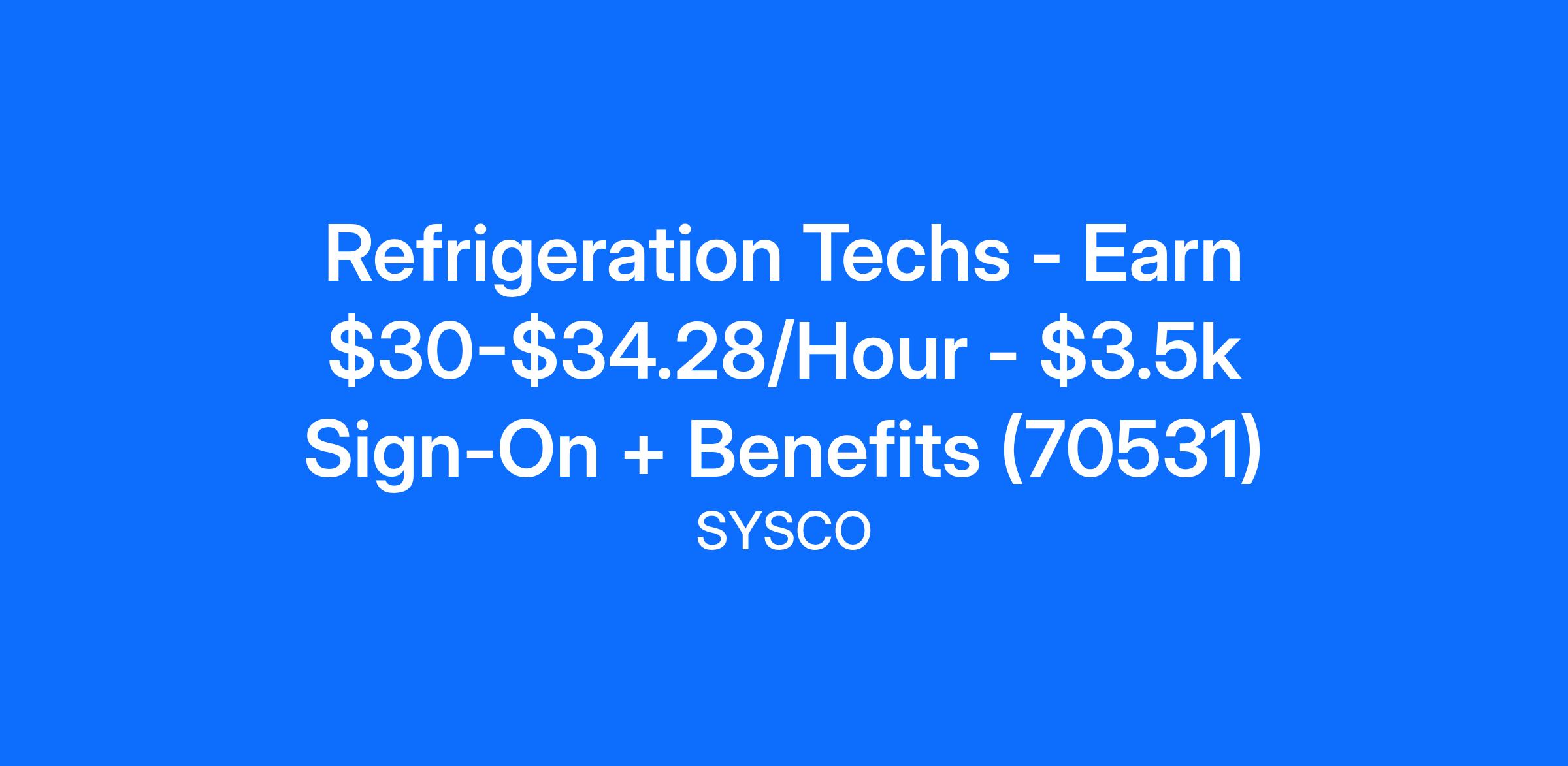 Refrigeration Techs - Earn $30-$34.28/Hour - $3.5k Sign-On + Benefits (70531)