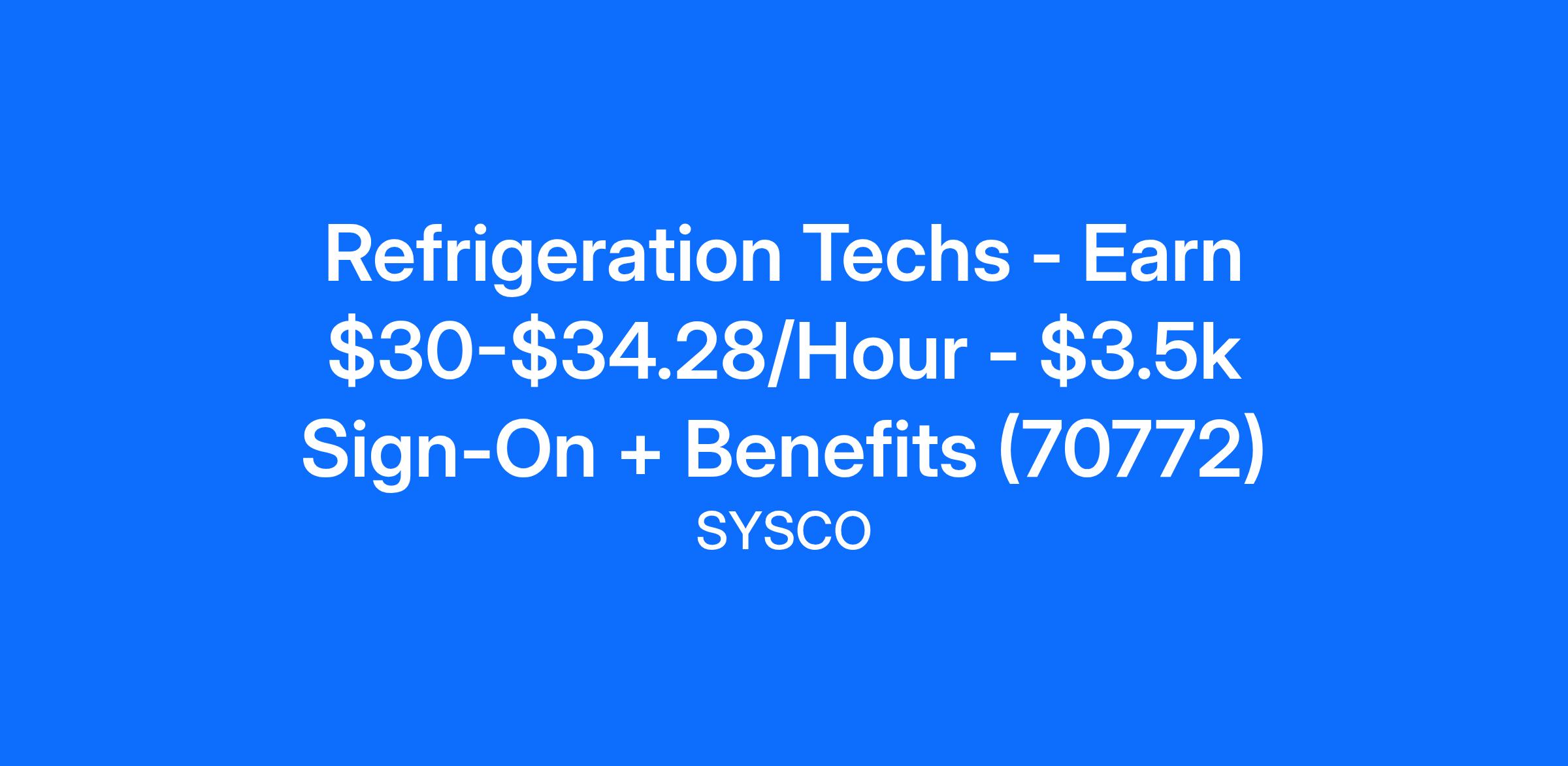 Refrigeration Techs - Earn $30-$34.28/Hour - $3.5k Sign-On + Benefits (70772)