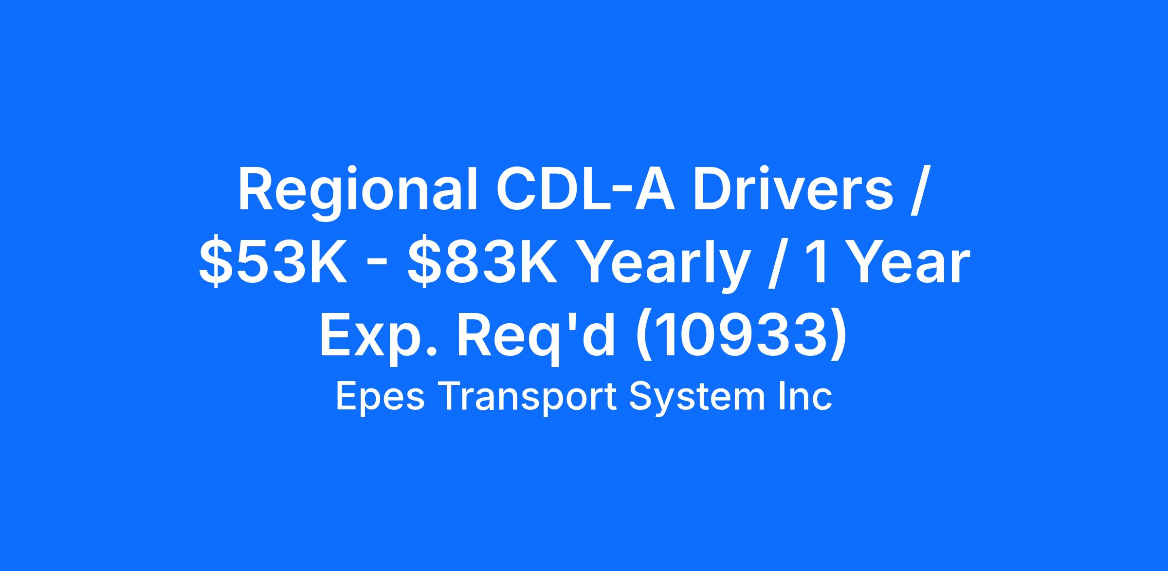 Regional CDL-A Drivers / $53K - $83K Yearly / 1 Year Exp. Req'd (10933)