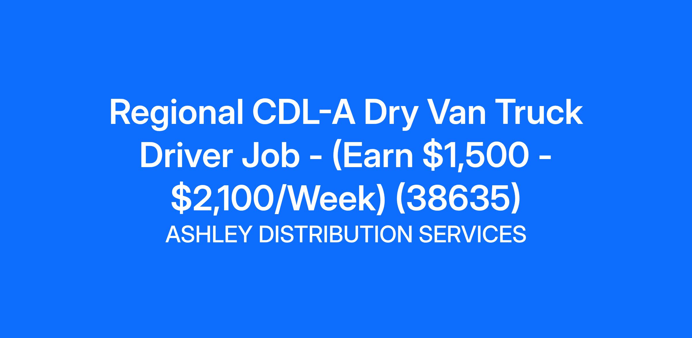 Regional CDL-A Dry Van Truck Driver Job - (Earn $1,500 - $2,100/Week) (38635)