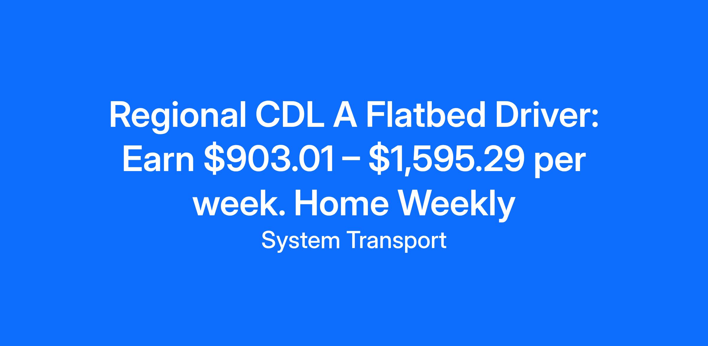 Regional CDL A Flatbed Driver: Earn $903.01 – $1,595.29 per week. Home Weekly