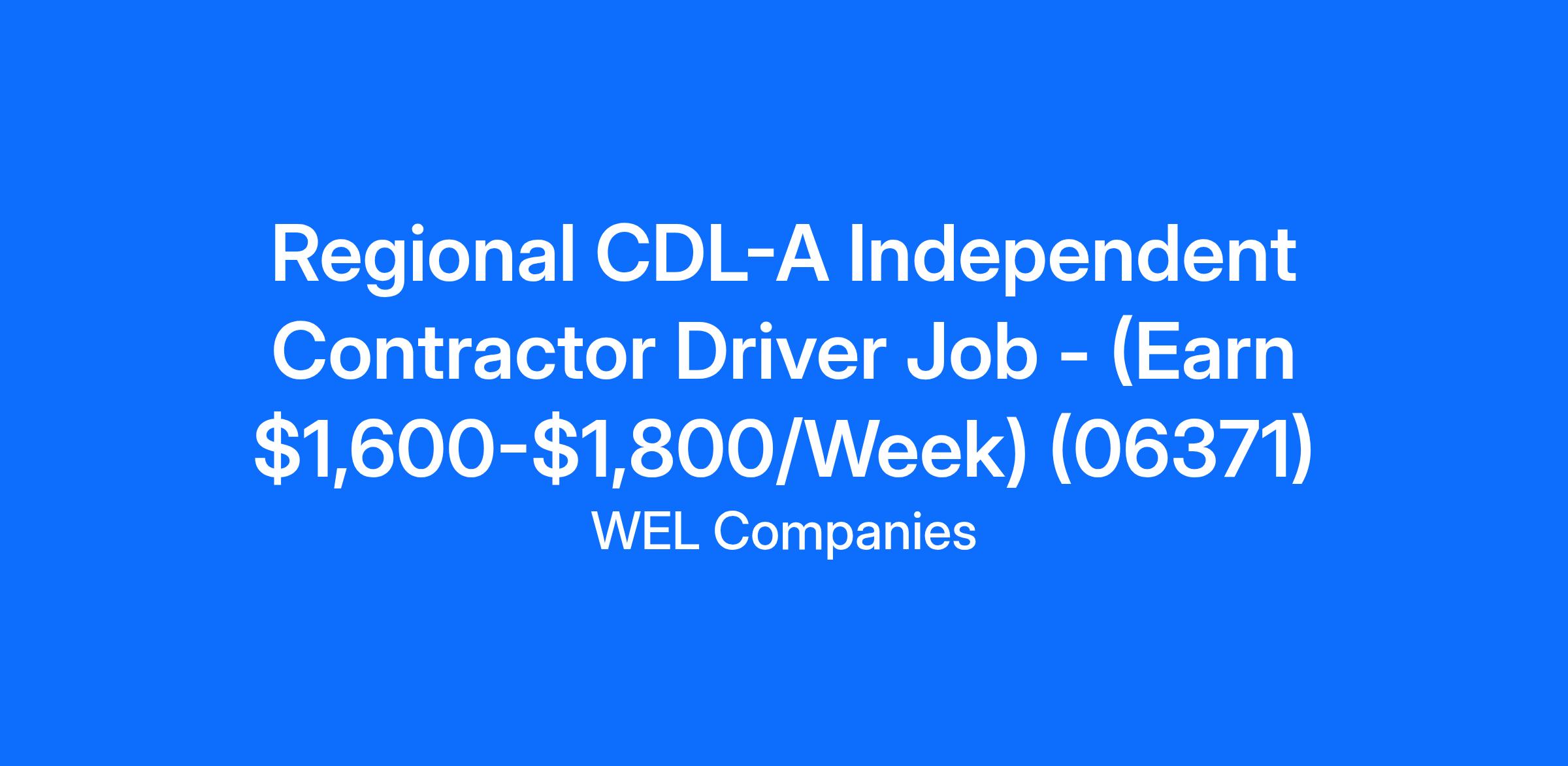 Regional CDL-A Independent Contractor Driver Job - (Earn $1,600-$1,800/Week) (06371)