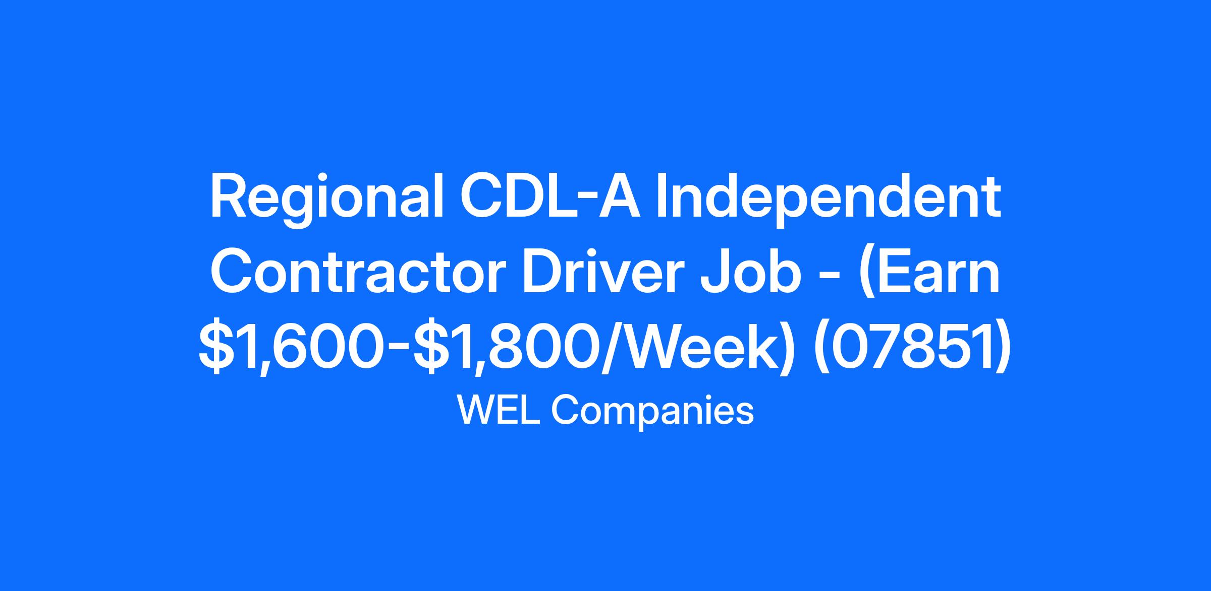 Regional CDL-A Independent Contractor Driver Job - (Earn $1,600-$1,800/Week) (07851)