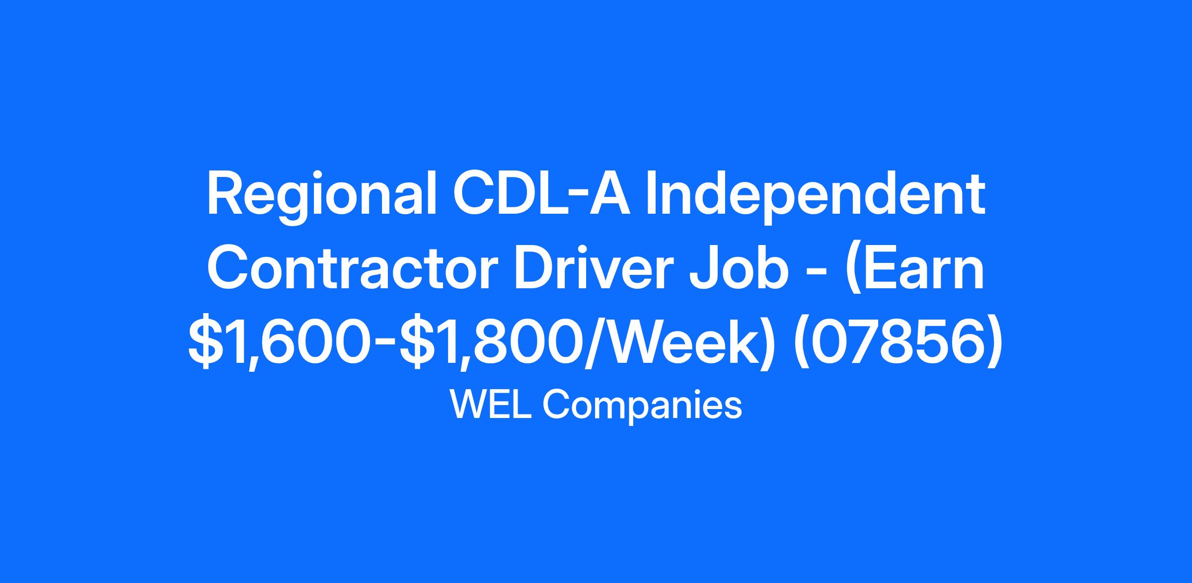 Regional CDL-A Independent Contractor Driver Job - (Earn $1,600-$1,800/Week) (07856)