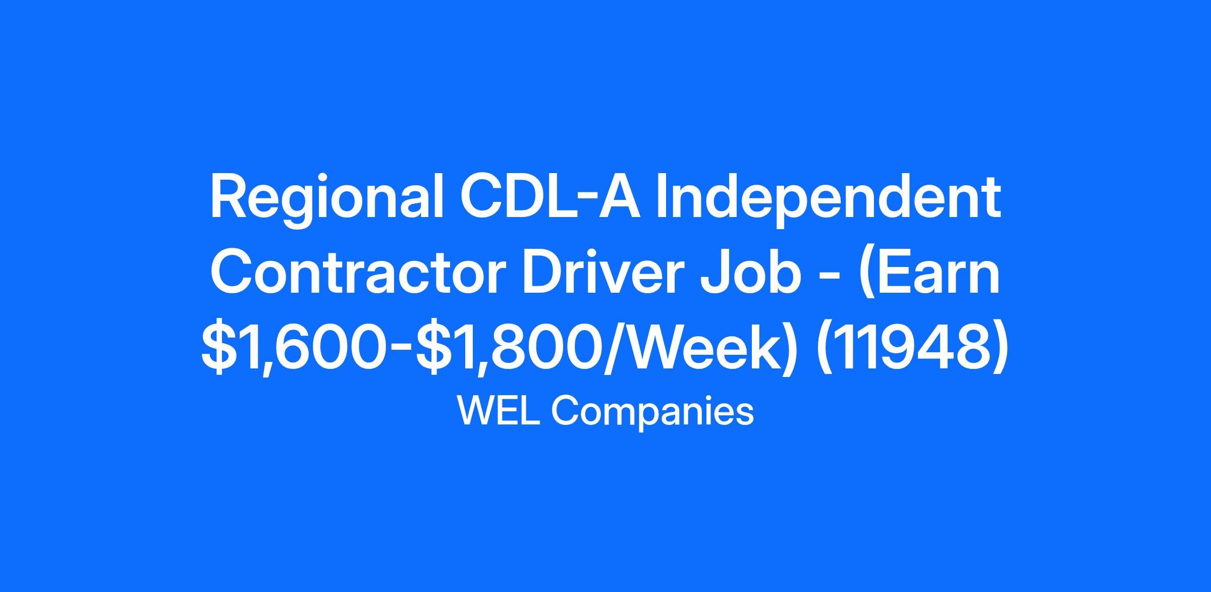 Regional CDL-A Independent Contractor Driver Job - (Earn $1,600-$1,800/Week) (11948)