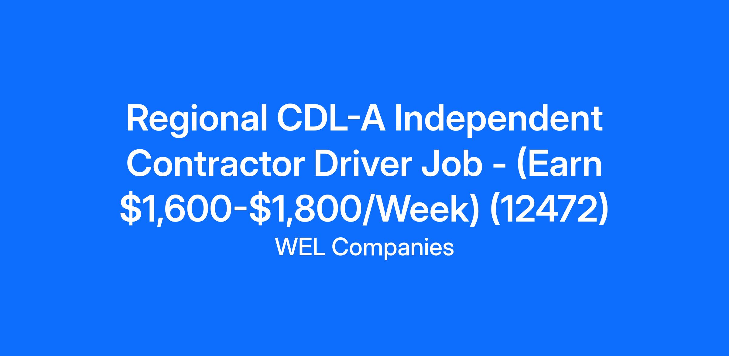 Regional CDL-A Independent Contractor Driver Job - (Earn $1,600-$1,800/Week) (12472)
