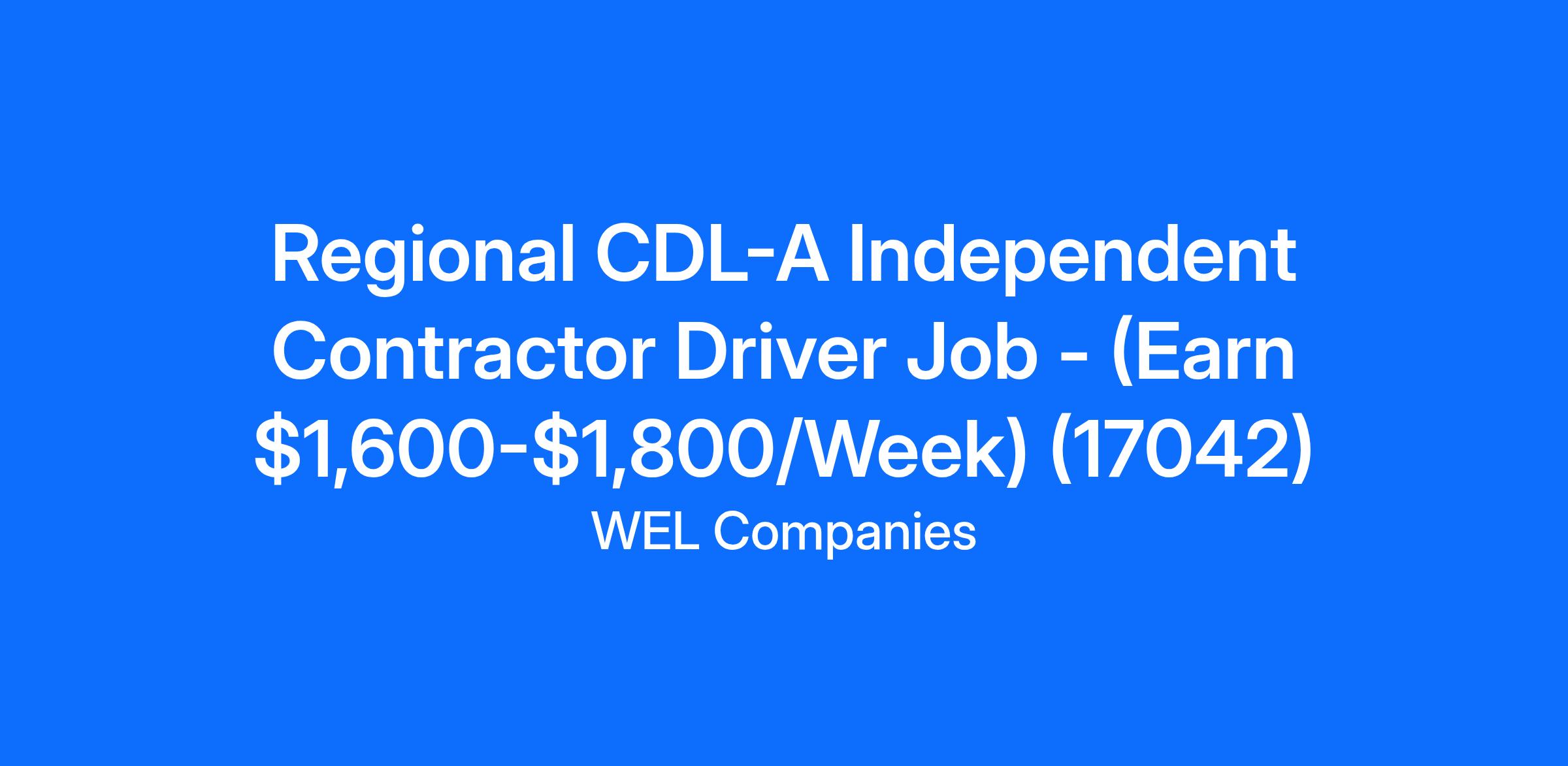 Regional CDL-A Independent Contractor Driver Job - (Earn $1,600-$1,800/Week) (17042)