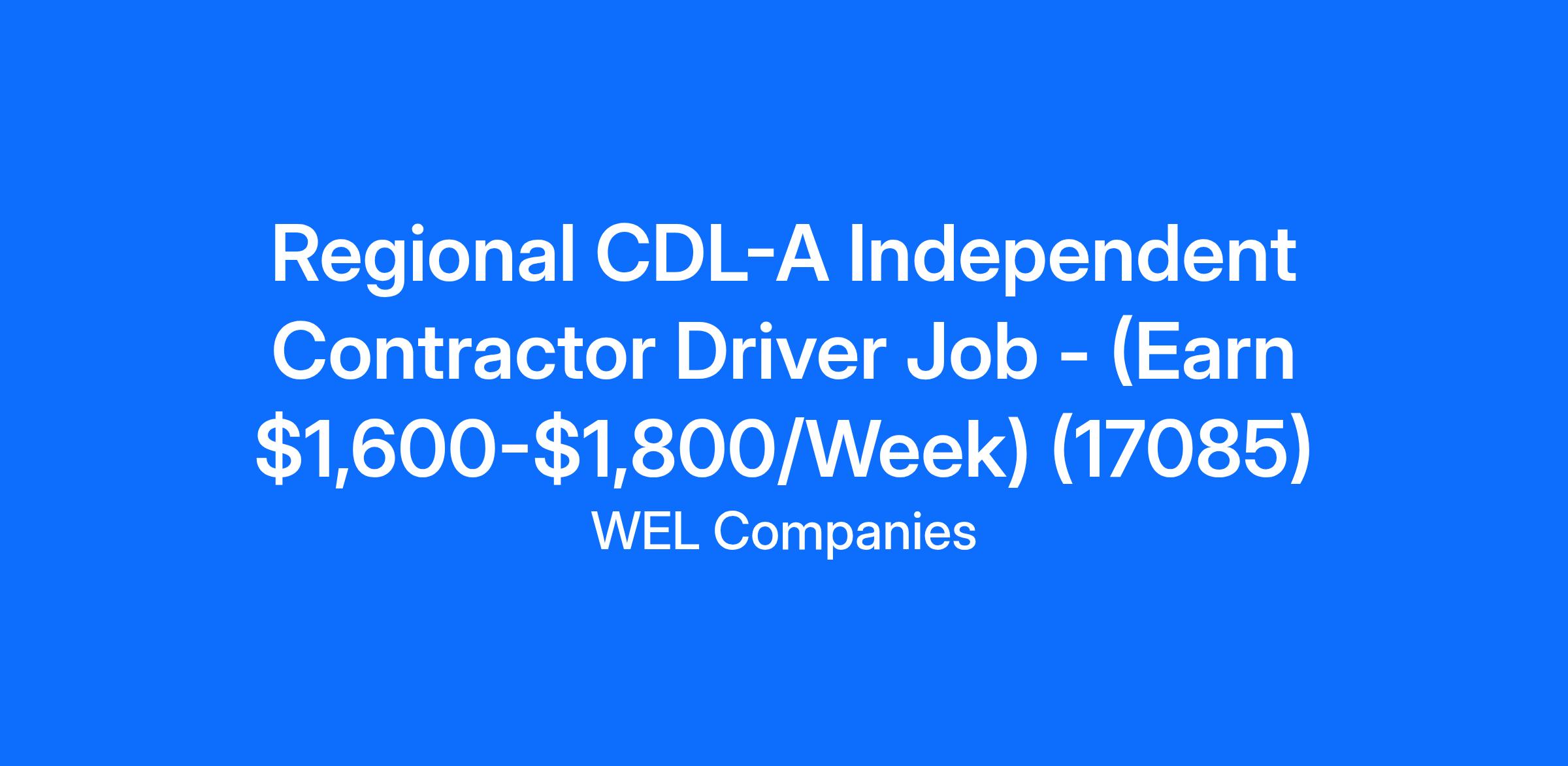 Regional CDL-A Independent Contractor Driver Job - (Earn $1,600-$1,800/Week) (17085)