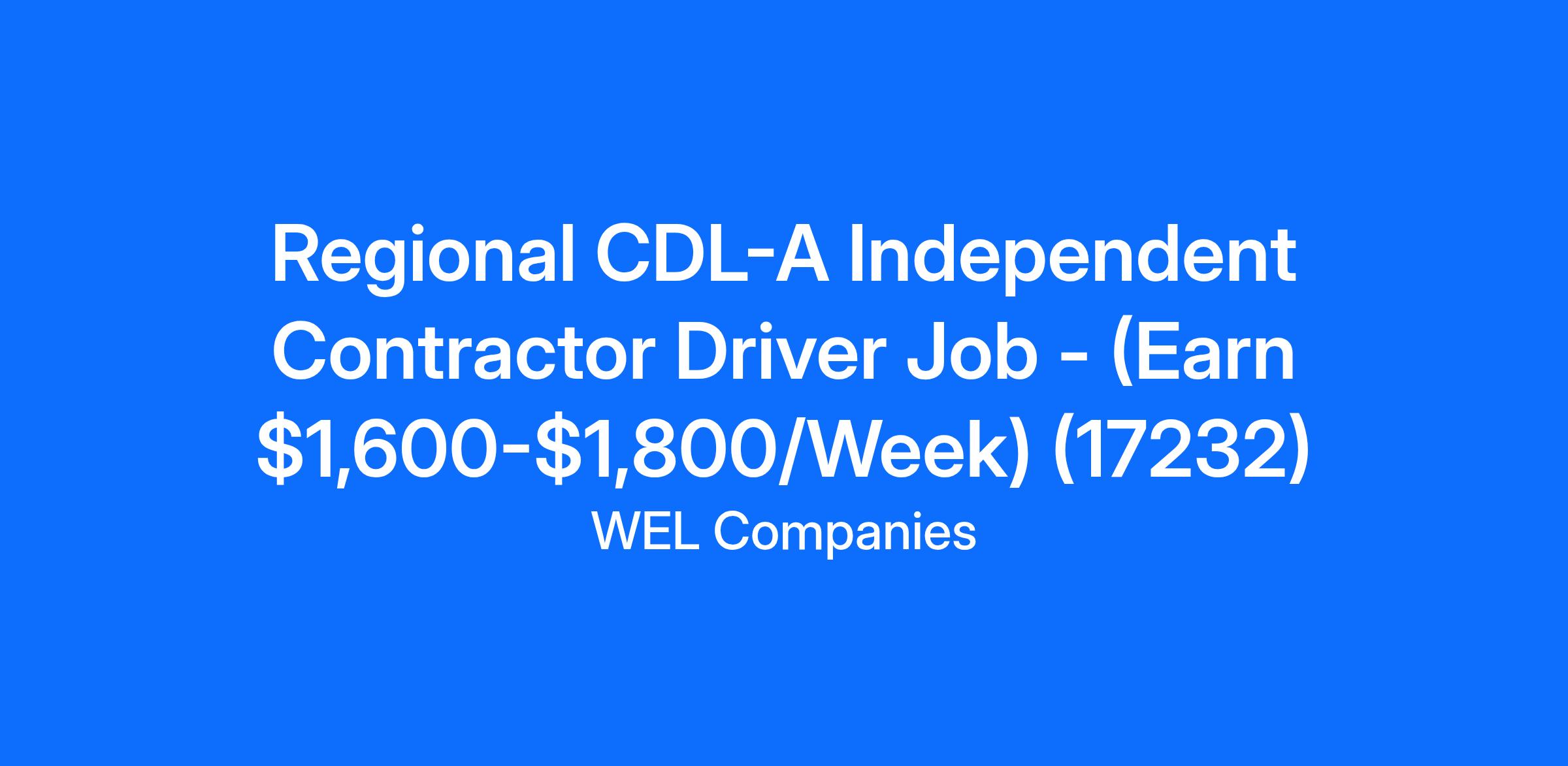 Regional CDL-A Independent Contractor Driver Job - (Earn $1,600-$1,800/Week) (17232)