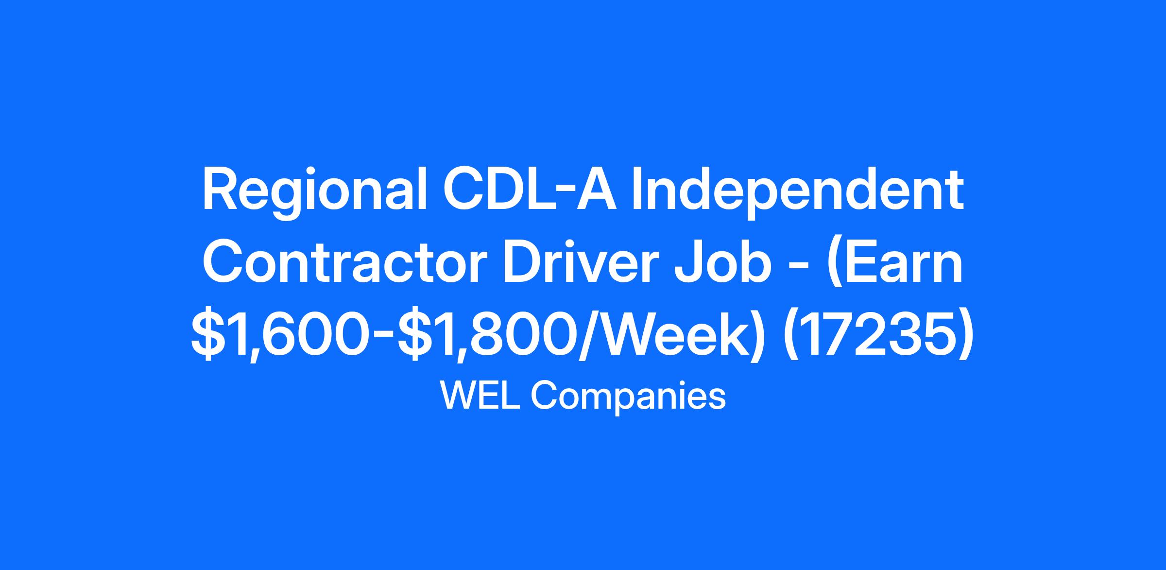 Regional CDL-A Independent Contractor Driver Job - (Earn $1,600-$1,800/Week) (17235)