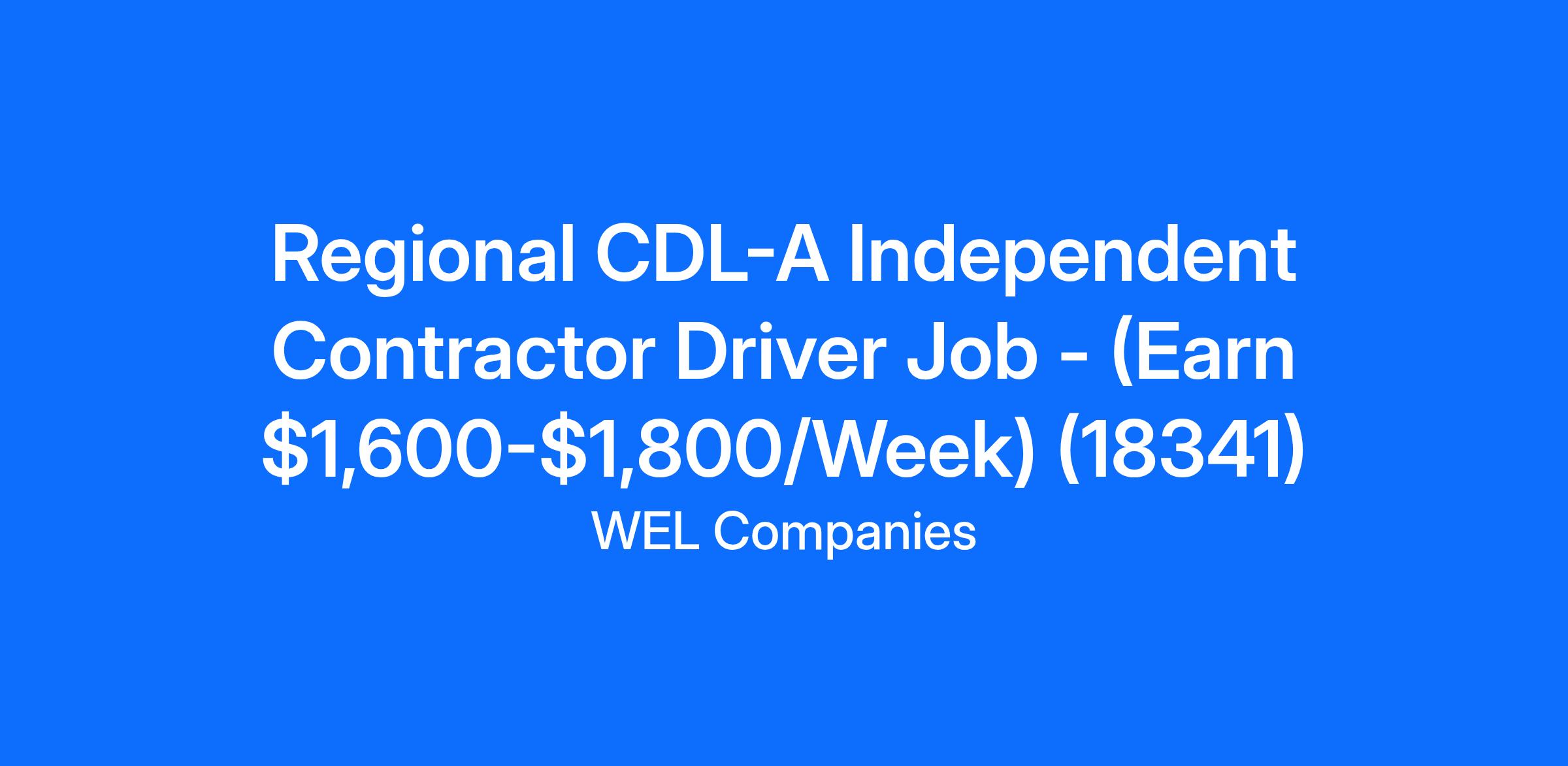 Regional CDL-A Independent Contractor Driver Job - (Earn $1,600-$1,800/Week) (18341)