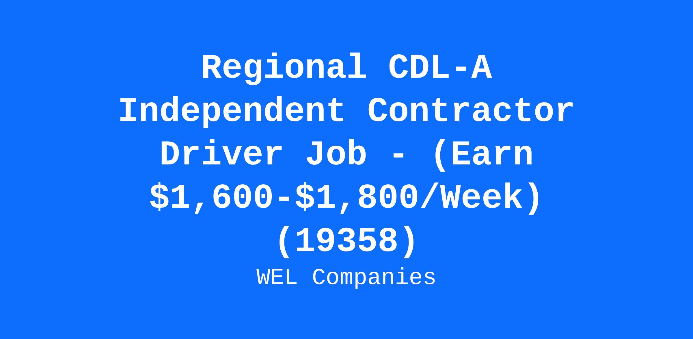 Regional CDL-A Independent Contractor Driver Job - (Earn $1,600-$1,800/Week) (19358)
