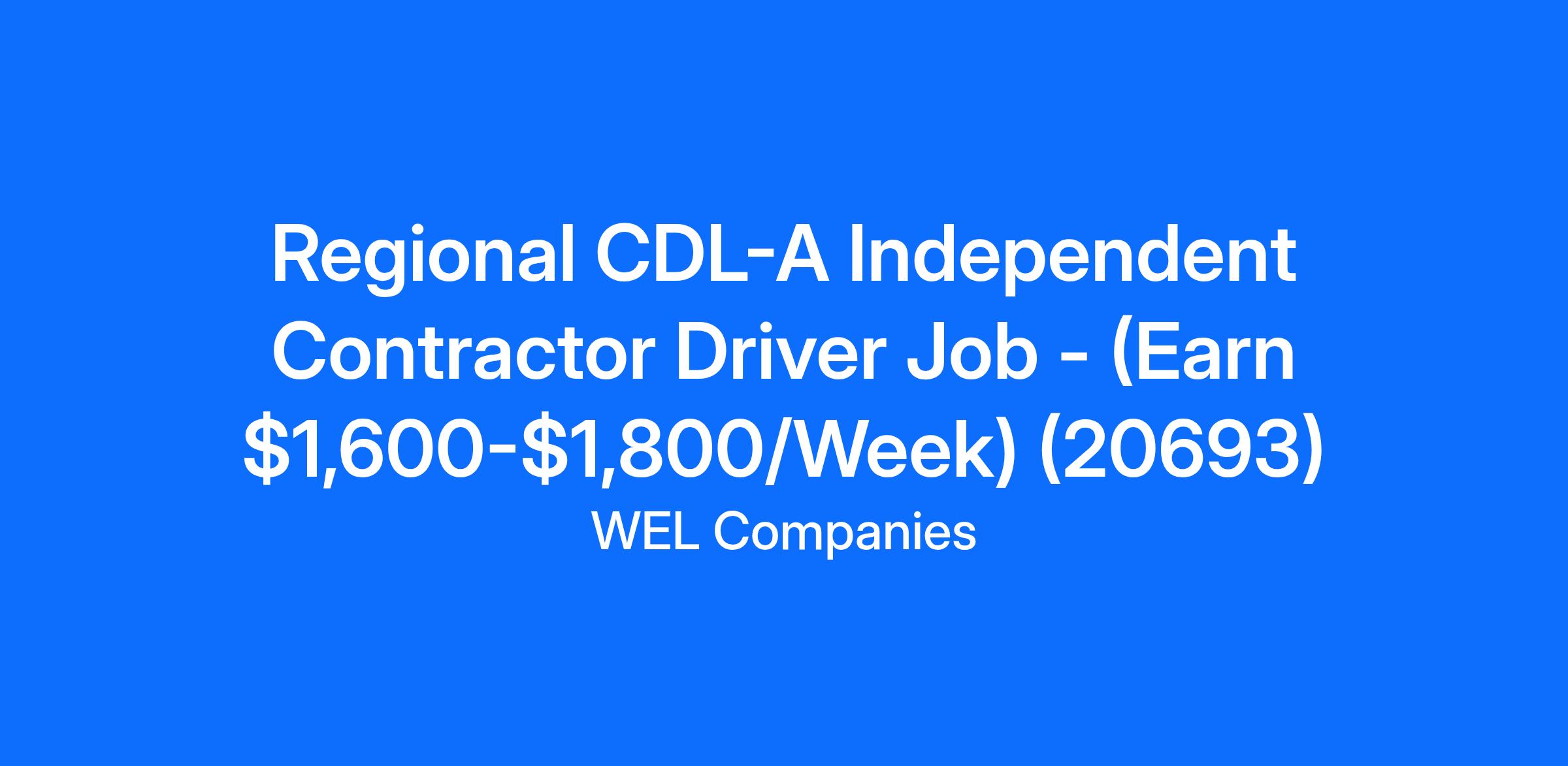 Regional CDL-A Independent Contractor Driver Job - (Earn $1,600-$1,800/Week) (20693)