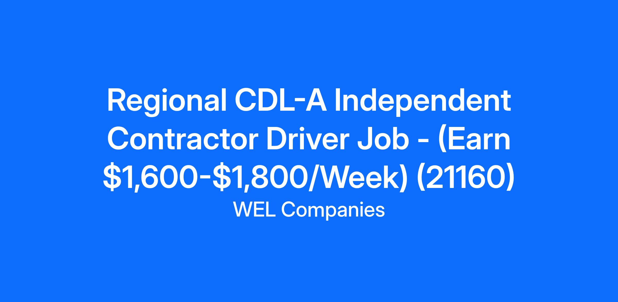 Regional CDL-A Independent Contractor Driver Job - (Earn $1,600-$1,800/Week) (21160)