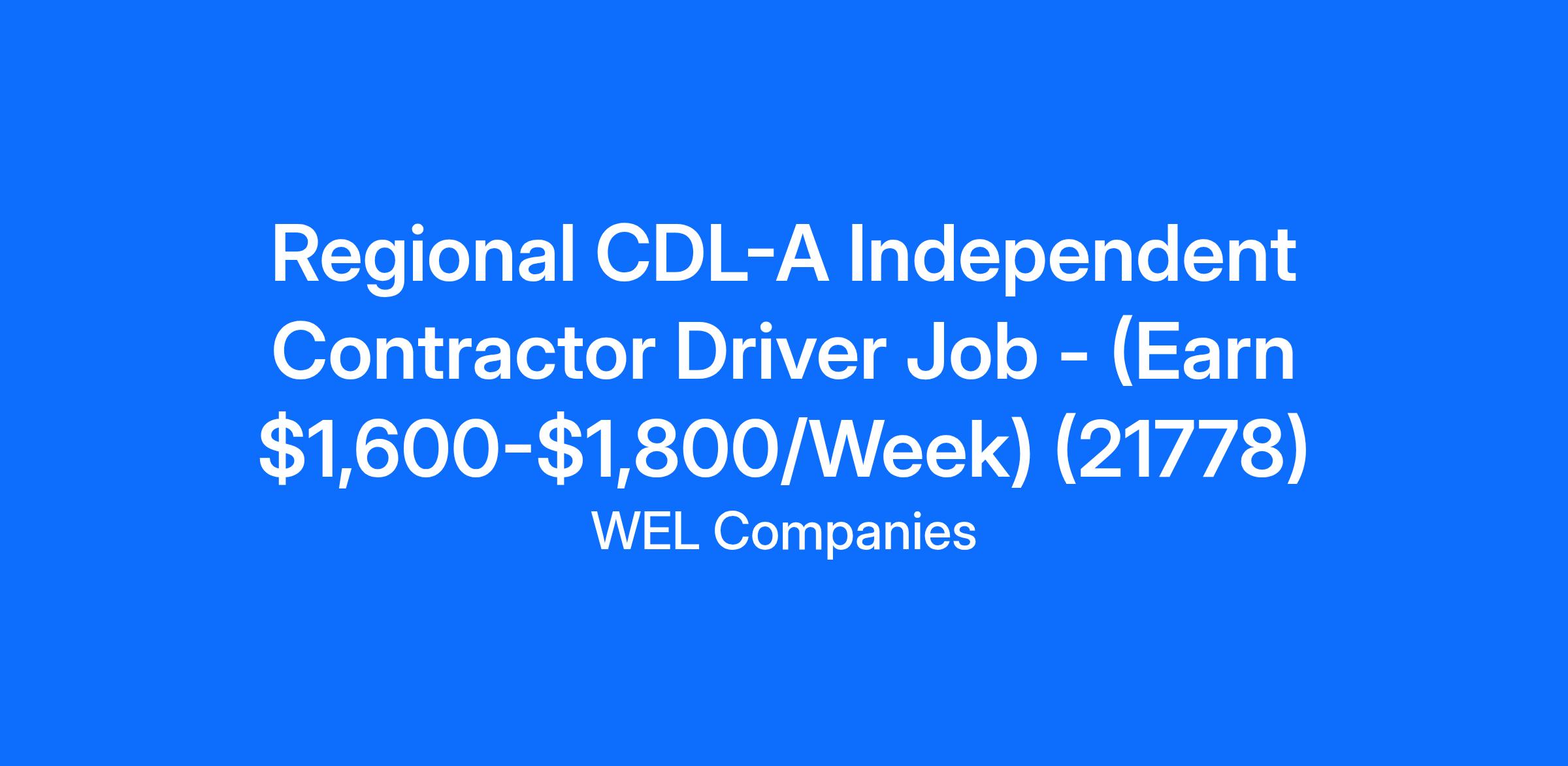Regional CDL-A Independent Contractor Driver Job - (Earn $1,600-$1,800/Week) (21778)
