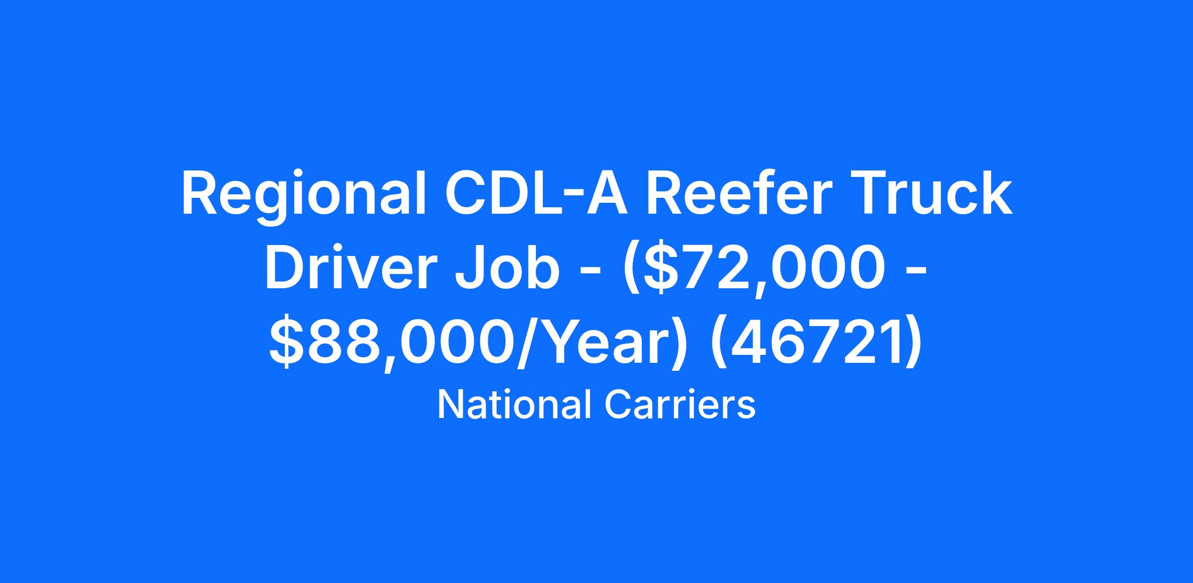 Regional CDL-A Reefer Truck Driver Job - ($72,000 - $88,000/Year) (46721)