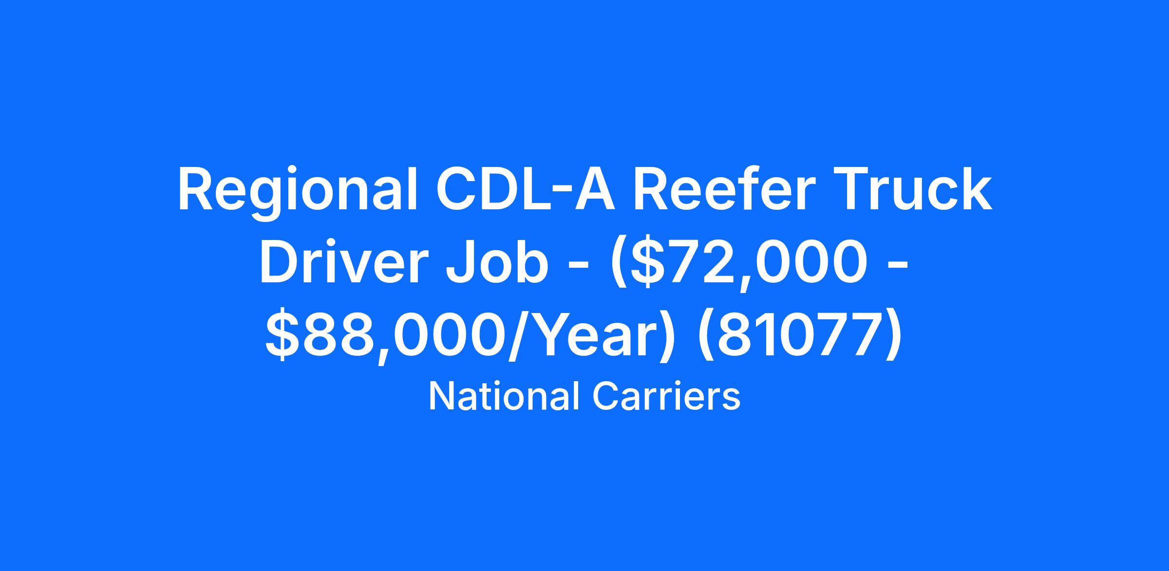 Regional CDL-A Reefer Truck Driver Job - ($72,000 - $88,000/Year) (81077)