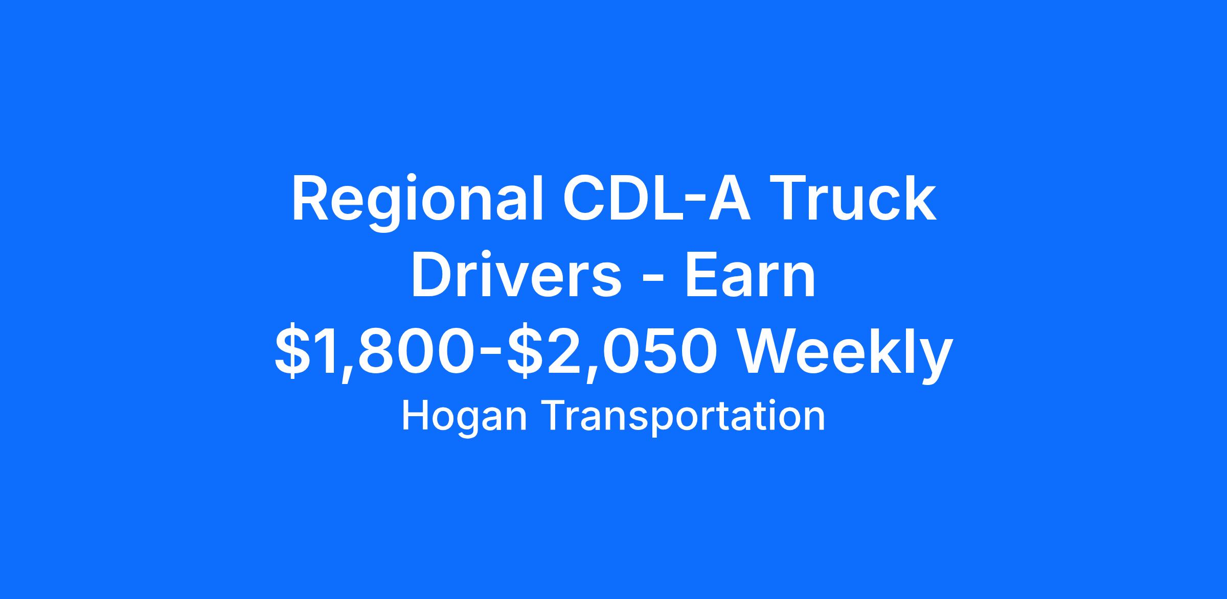 Regional CDL-A Truck Drivers - Earn $1,800-$2,050 Weekly